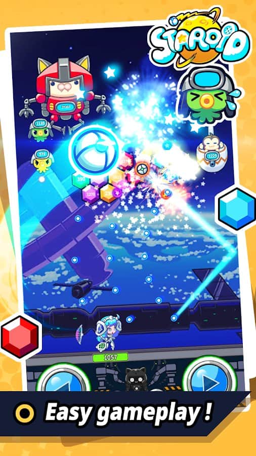 В Staroid : Smash defense вам представиться можливість грати Староидами – кумедними персонажами, народженими зірки. Всі вони володіють унікальними навичками і особливими здібностями, які можна покращувати в ході гри. Складність гри, як і в будь-якому арканоиде, поступово збільшується. Тому, вам буде запропоновано великий вибір різної зброї і вихованців, які не дадуть занудьгувати вашим супротивникам. Ігрові бустери, выпадаемые протягом гри, дозволять вам впоратися в особливо важких ситуаціях. Знищуйте ворожих босів, тренуйте вашу реакцію, точність і уважність, врятуйте світ від вторгнення інопланетних загарбників!