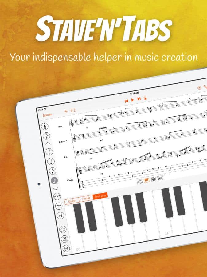 Stave'і Tabs - З допомогою додаток ви зможете створювати цілі музичні композиції, і хоча для більшості людей це додаток буде дуже корисним, все ж та частина хто тісно пов'язані з музикою, обов'язково його оцінять. Тут є ціла купа можливостей, в тому числі і прослуховування того що у вас вийшло, і навіть конвертування даних в різні формати, що б надалі перекидати їх куди-завгодно. Створюйте свою музику, пишіть і вдосконалюйте музичні партитури.