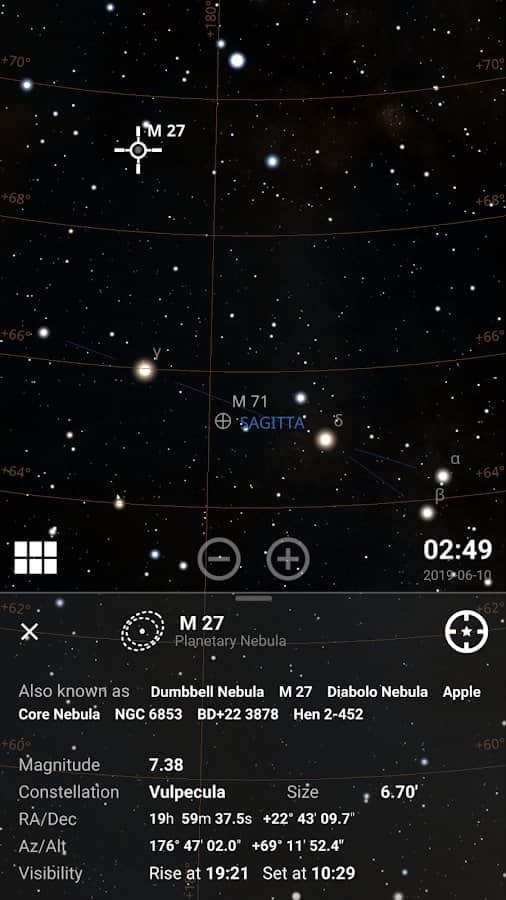 Stellarium Mobile PLUS - Star Map – відмінне додаток на андроїд, де ви отримаєте астрономічну карту зоряного неба нового покоління. У додатку ви знайдете реалістичне і точне моделювання нічного неба з величезною кількістю онлайн зображень і каталогом небесних тел. Це додаток розроблено творцем відомого планетарію з відкритим вихідним кодом Stellarium. Версія PLUS була створена для демонстрації та відкритого доступу до інтерфейсу астрономічної карті зоряного неба.