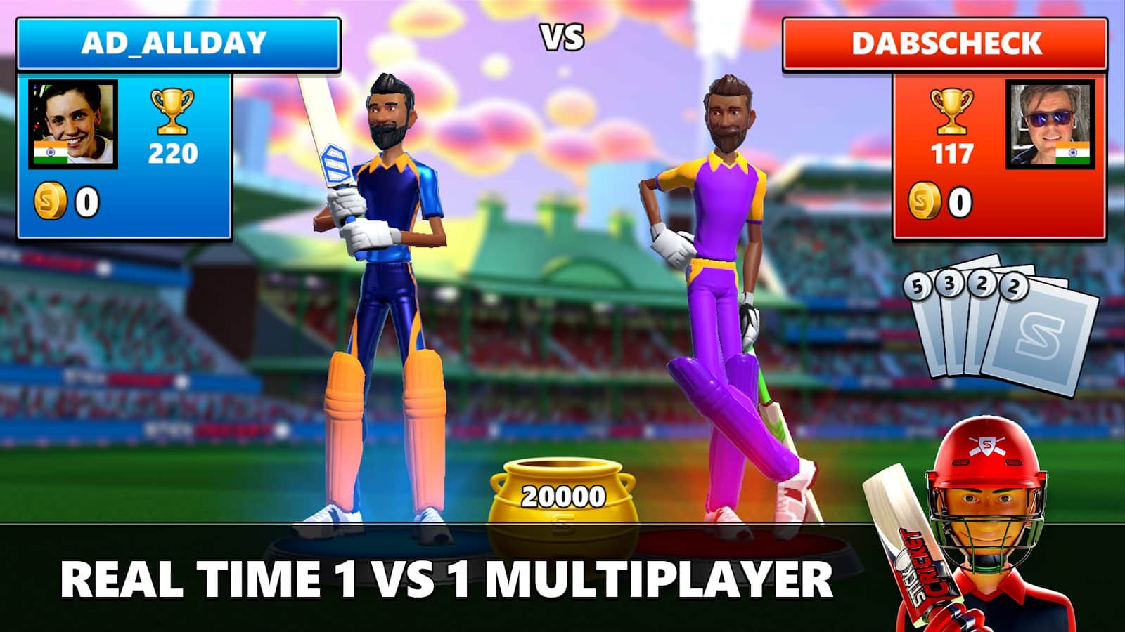 Stick Cricket – спортивна гра на андроїд, де ви будете грати в крикет. Грайте в крикет в режимі реального часу на різних стадіонах по всьому світу. Кидайте виклик досвідченим командам і перевірте свої навички та вміння здійснювати добрі подачі. Ця гра порадує любителів крикету величезним діапазоном пострілів, великими ставками і можливістю відкривати нові стадіони по всьому світу. Оновлюйте свою команду підбираючи досвідчених гравців та настроювати зовнішній вигляд гравців на свій розсуд. Заробляйте призи і відкривайте нових персонажів.