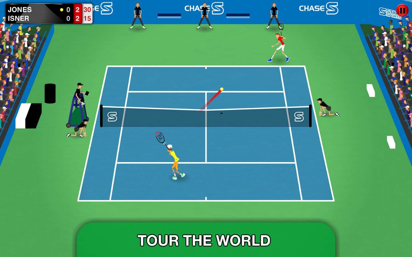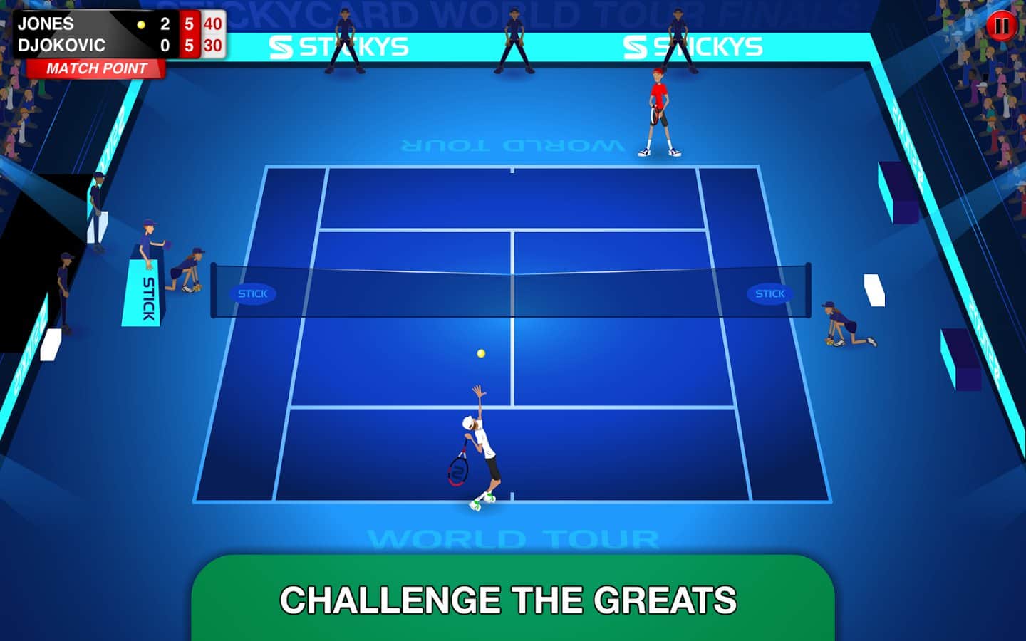 Stick Tennis Tour – спортивная игра на андроид, где вы сможете посоревноваться на корте с другими игроками за главный приз чемпионата мира по теннису. Участвуйте в турнире и выберите себе подходящего игрока из представленных в этой игре. Пройдите все 28 туров и поднимитесь на самый верх в таблице лидеров. Оттачивайте свои навыки и мастерство играя против умного Al, побеждая его с легкостью. Бросьте вызов самым лучшим игрокам в этой игре и выиграйте главный кубок турнира. Эта игра может похвастаться более 80 уникальными местами, 180 игроками и захватывающим геймплеем.
