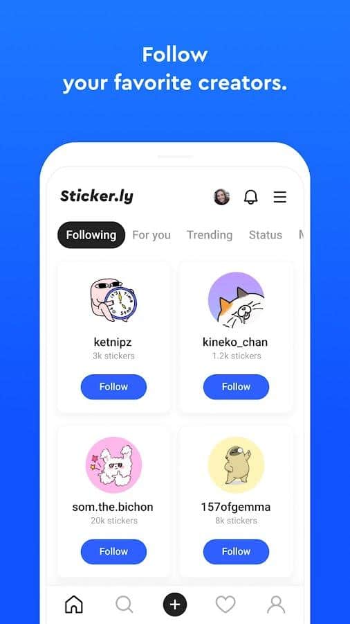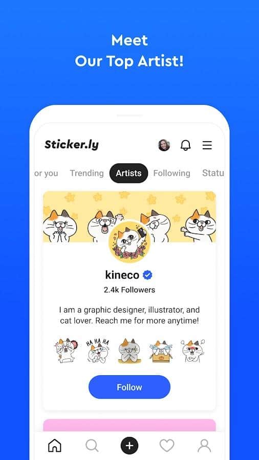 - Підписуйтеся на улюблених творців або художників, щоб миттєво отримувати нові стікери WA.
