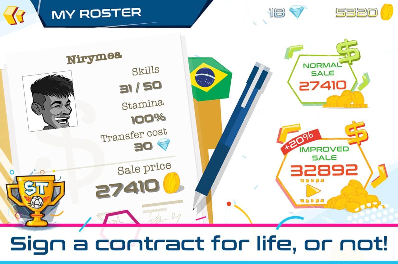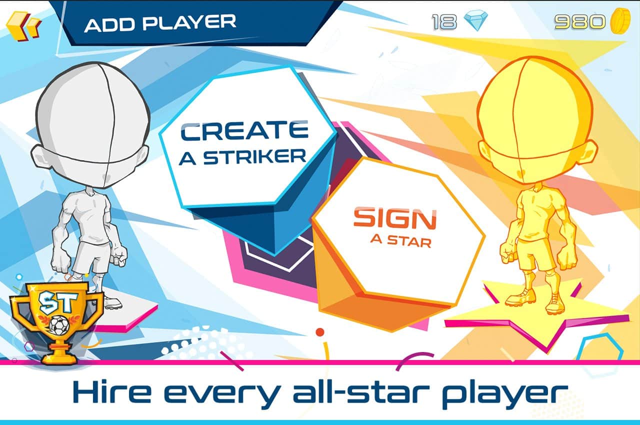 Striker Trophy: running to win - Біжіть вперед перестрибуючи перешкоди. Управляйте футболістом, і проведіть його як можна далі по полю. Кожен гравець тут зможе створити свого унікального персонажа, всі футболісти повністю кастомізуются, ви можете змінювати одяг, погляд і навіть губи, створивши свого універсального гравця будете бігти по полю. По дорозі вам будуть зустрічатися перешкоди, і вам потрібно їх перестрибувати, прослизати під ними, ну або використавши супер бонус зносити все на своєму шляху!