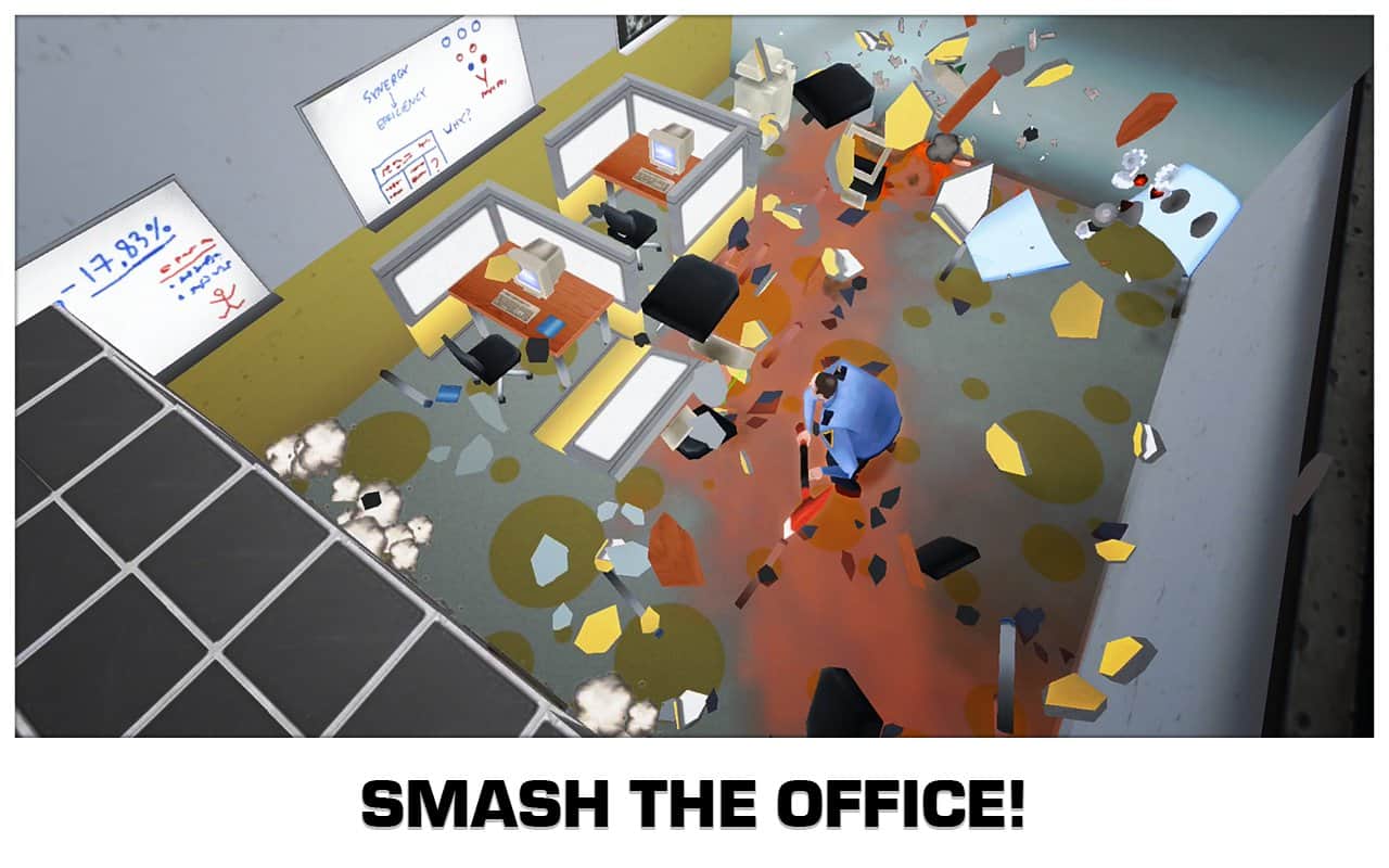 Super Smash the Office - У вас поганий настрій? Всі дістали на роботі? Тепер це не проблема, роздеріть свій офіс під три чорти. Думаєте у вас талант до руйнування? Ця гра дасть вам гідну відсіч, адже трощити все на своєму шляху потрібно не тільки правильно, але й швидко, ззаду вас буде підштовхувати стіна, і якщо ви не встигли зламати все в кімнаті, то програли! Так само, тут є різні персонажі, так що ви зможете підібрати когось з своєї професії, будь то сторож, або ж офісний працівник у піджаку. Вперед, трощити, ламати і трощити все на своєму шляху.