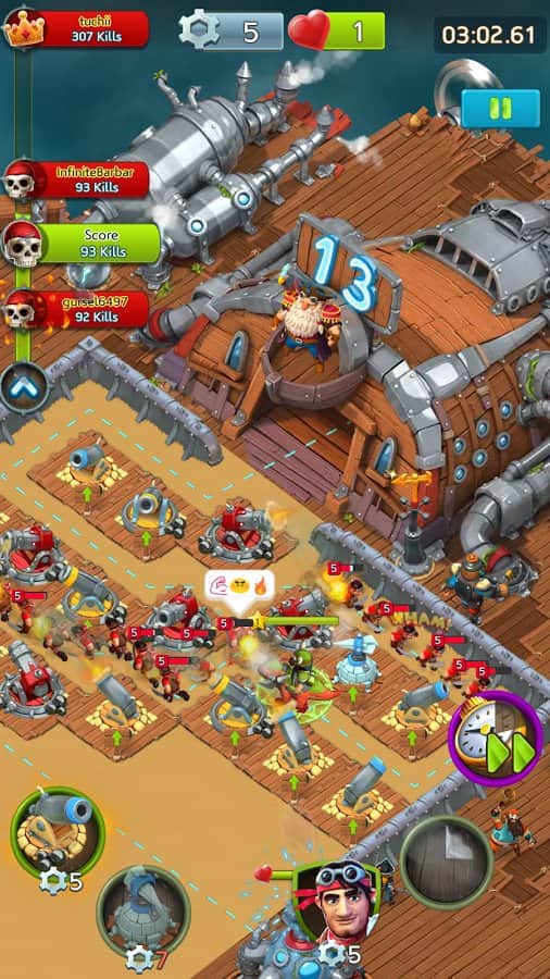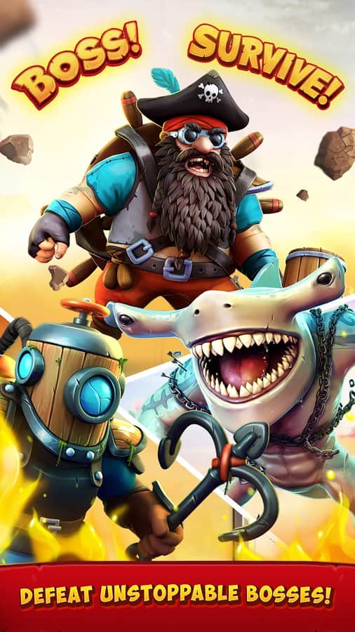 Survival Arena – стратегія на android, яка перенесе вас на легендарні ширяють арени, які належать піратського капітана. У цій грі вашим завданням буде будувати вежі і розставляти їх у потрібних місцях для того щоб атакувати суперника. Відбивайте ворожі атаки і перемагайте в нелегких боях, які принесуть вам відмінні нагороди. Розробляйте свою стратегію ведення бою і застосовуйте в бою всю свою зброю і вежі. Переміщайтеся по різноманітним арен і беріть участь в стрімких турнірах, що проходять між гравцями зі всього світу. Грайте в цю гру і стати найбільшим стратегом.