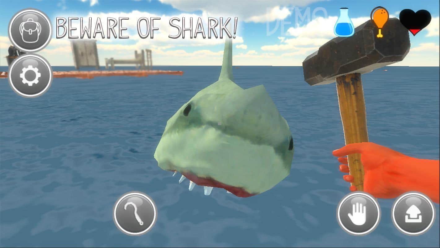 Survival on Raft - Відмінний симулятор виживання, який повністю занурить вас в атмосферу виживання в суворих умовах. У цій грі ви почнете виживання серед океану на невеликому плоту. Але вскором часу ви зможете побудувати ціле містечко на воді! Все залежить тільки від вас! Здаєтеся ви безжальним акулам або выживите?