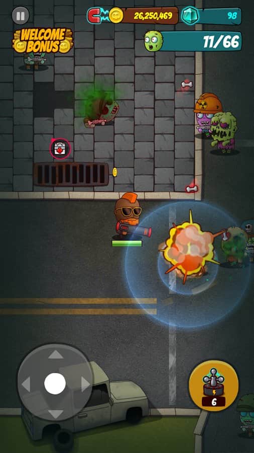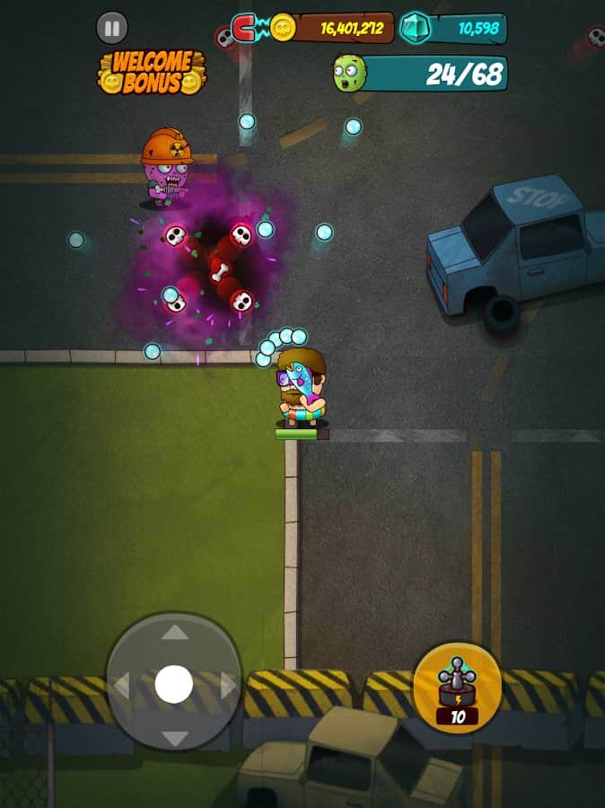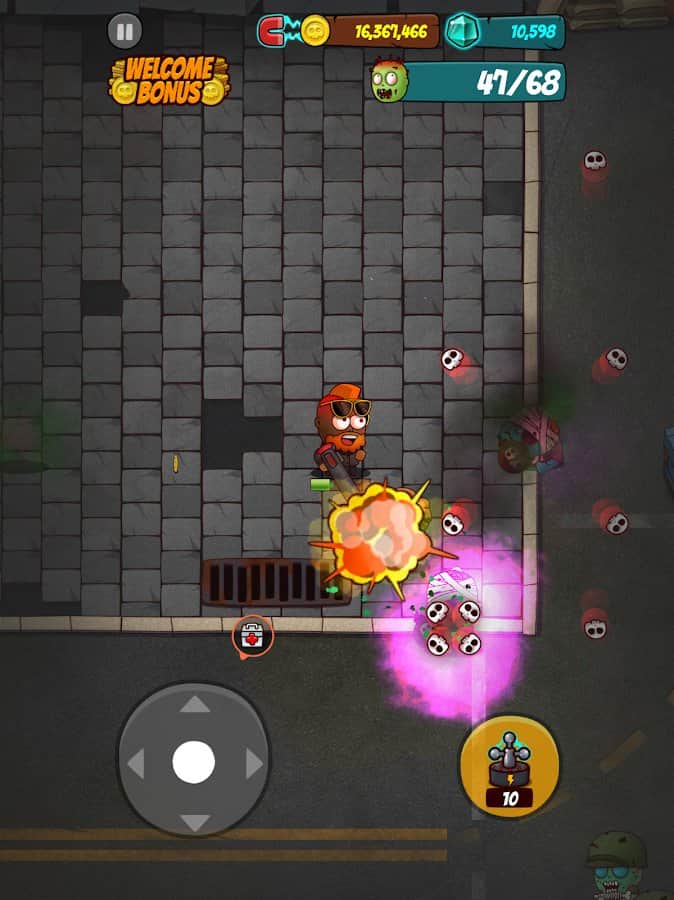 Survival Zombie Hunter – виживайте в пост-апокаліптичному світі і знищуйте зомбі. У цій грі вашою головною задачею буде виживати в екстремальних умовах і битися з зомбі атакують вас з усіх боків. Візьміть в руки зброю і переміщайтеся в численних і різноманітних локаціях гри знищуючи зомбі і збираючи монетки щоб отримати нову зброю і відкрити для себе нових персонажів. Перевірте на ділі режим виживання і протримаєтеся більше 100 рівнів в грі. Гравці оцінять відмінну мультяшну графіком і динамічну полювання на зомбі.