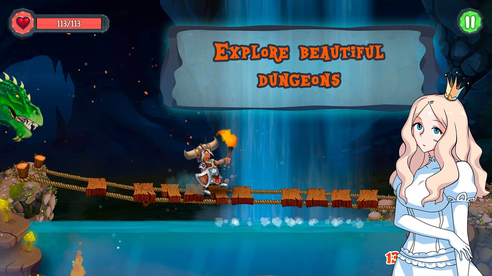 Swift Knight – керуйте відважним лицарем, який спустився в небезпечні печери щоб відшукати принцесу. Проведіть хороброго лицаря через темні і похмурі печери, наповнені смертельними пастками, численними перешкодами і монстрами. Дракон викрав принцесу і розмістив її в печерах, і тільки ваш герой зголосився врятувати її. Біжіть щодуху і допоможіть героєві подолати всі перешкоди на шляху і втекти від небезпечного дракона, який слідує за вами по п'ятах. По дорозі збирайте золото і різні ресурси, які дозволять вам виготовити зілля для відновлення здоров'я персонажа.