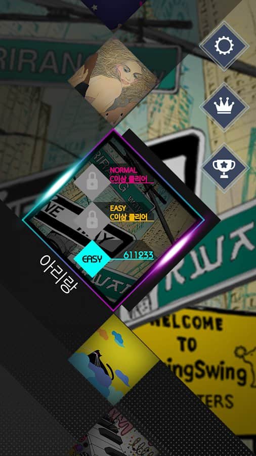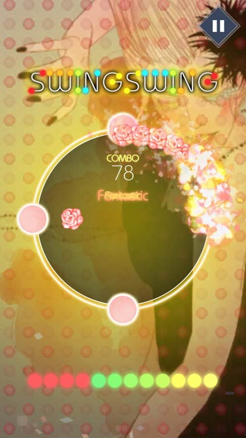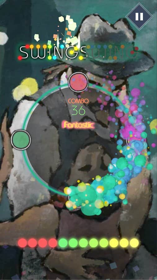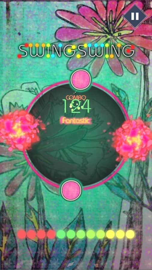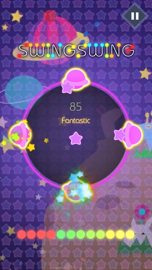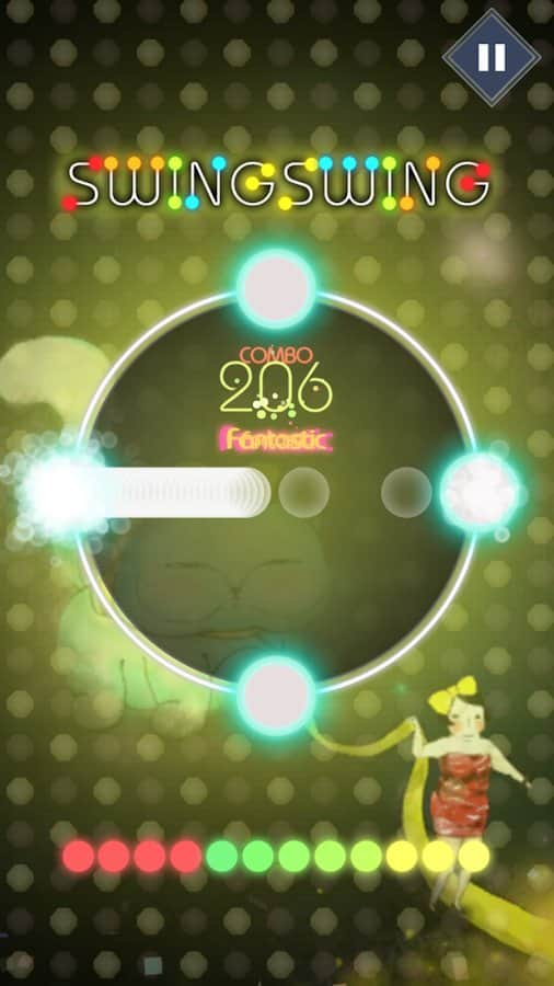 SwingSwing : Music Game – чудова музична гра на андроїд, з численними рівнями. У цій грі вашою головною задачею буде в потрібний момент торкатися екрану свого телефону або планшета і рухатися в такт музики. Ця гра відмінно підійде як для новачків, так і для досвідчених гравців, які мають високий рівень підготовки. З кожною новою обраної вами піснею буде змінюватися і стиль гри. Всього в грі ви знайдете 16 різних пісень і три рівні складності. Підбирайте рівень складності, який підходить вам за стилем гри і насолоджуйтесь динамічним ігровим процесом. Заробіть більше балів в режимі лихоманка.
