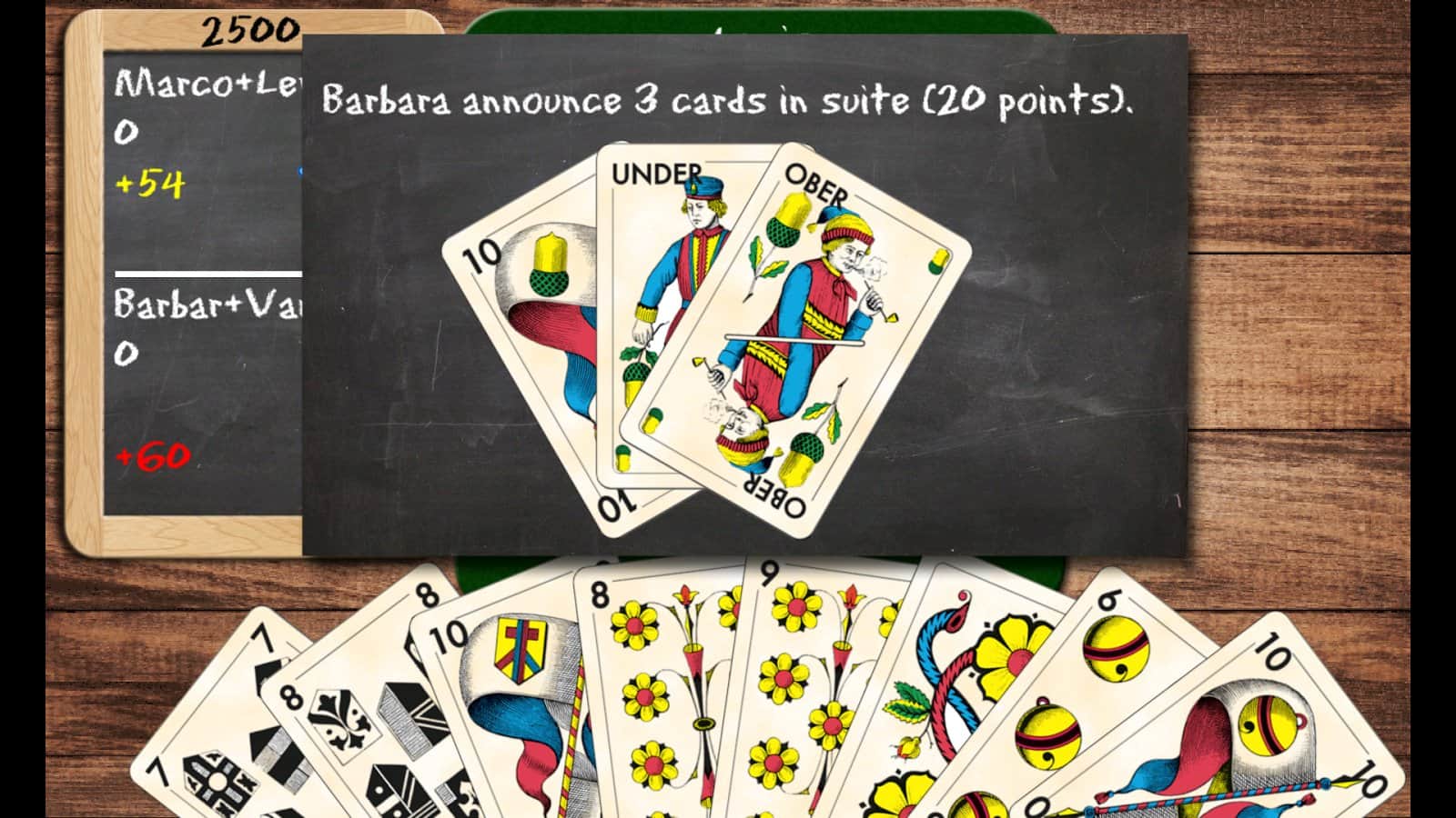 SwissJass – увлекательна карточная игра на андроид, с более миллионом загрузок. Это национальная швейцарская игра, которая стала доступна для вашего телефона или планшета. Для того как начать играть в эту игру пройдите режим обучения чтобы понять правила игры ведь они значительно отличаются от привычных нам. Играйте со своими друзьями по мультиплееру и набирайте достаточное количество очков, чтобы побороться с сильнейшими и поставить свой рекорд в таблице лидеров. Это полная версия игры и все функции доступны всегда и не чем не ограничены. Играйте и получайте максимум удовольствия от игры.