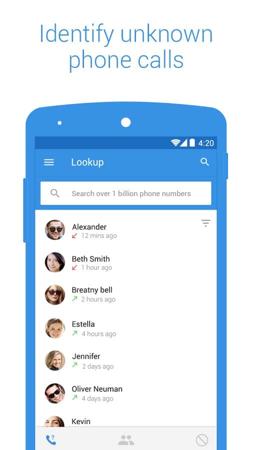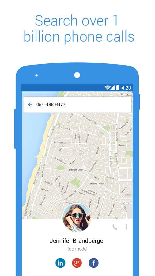 Ця програма надає користувачеві досить нестандартну функціональність: воно допоможе ідентифікувати дзвінки з невідомих номерів, блокувати небажані дзвінки, що допоможе боротися зі спамом, але куди цікавіше виглядає синхронізація телефонної книги з контактами в соціальних мережах. Програмою підтримуються Facebook, LinkedIn і Вконтакте. Звідти програма збирає інформацію про номери телефонів, фотографіях і дні народження ваших друзів, причому програма не просто буде знати потрібні дати, але і вчасно повідомить вас і запропонує варіанти вітальної листівки.