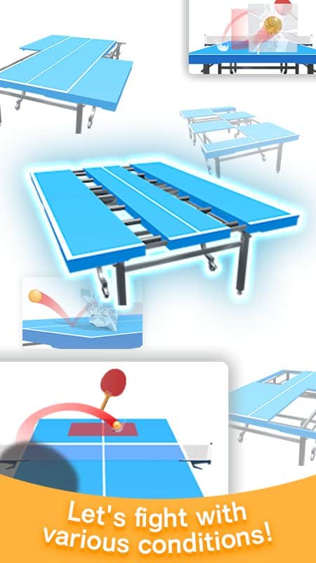 Table Tennis 3D Virtual World Tour Ping Pong – спортивна гра на андроїд, де ви будете грати в настільний теніс. Якщо ви любите пінг-понг то ця гра створена для вас. Беріть в руки ракетку і відбивайте м'ячик так щоб обіграти суперника і забити йому якомога більше очок. Тренуйте свою швидкість пальців і досягайте високих результатів у цій грі, піднімаючись якомога вище в таблиці лідерів. У цій грі ви знайдете кілька режимів гри, які зможете перевірити у дії і підібрати для себе підходящий.