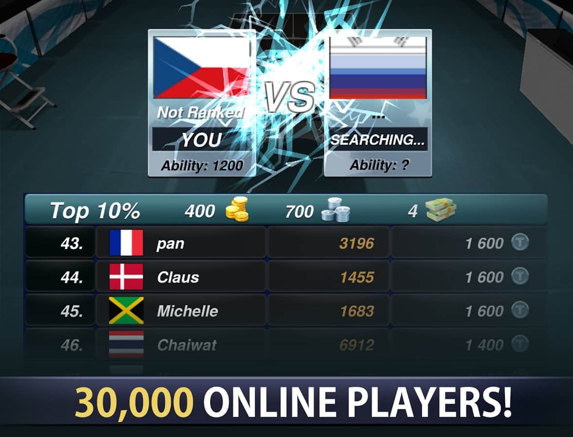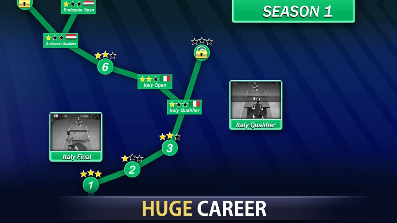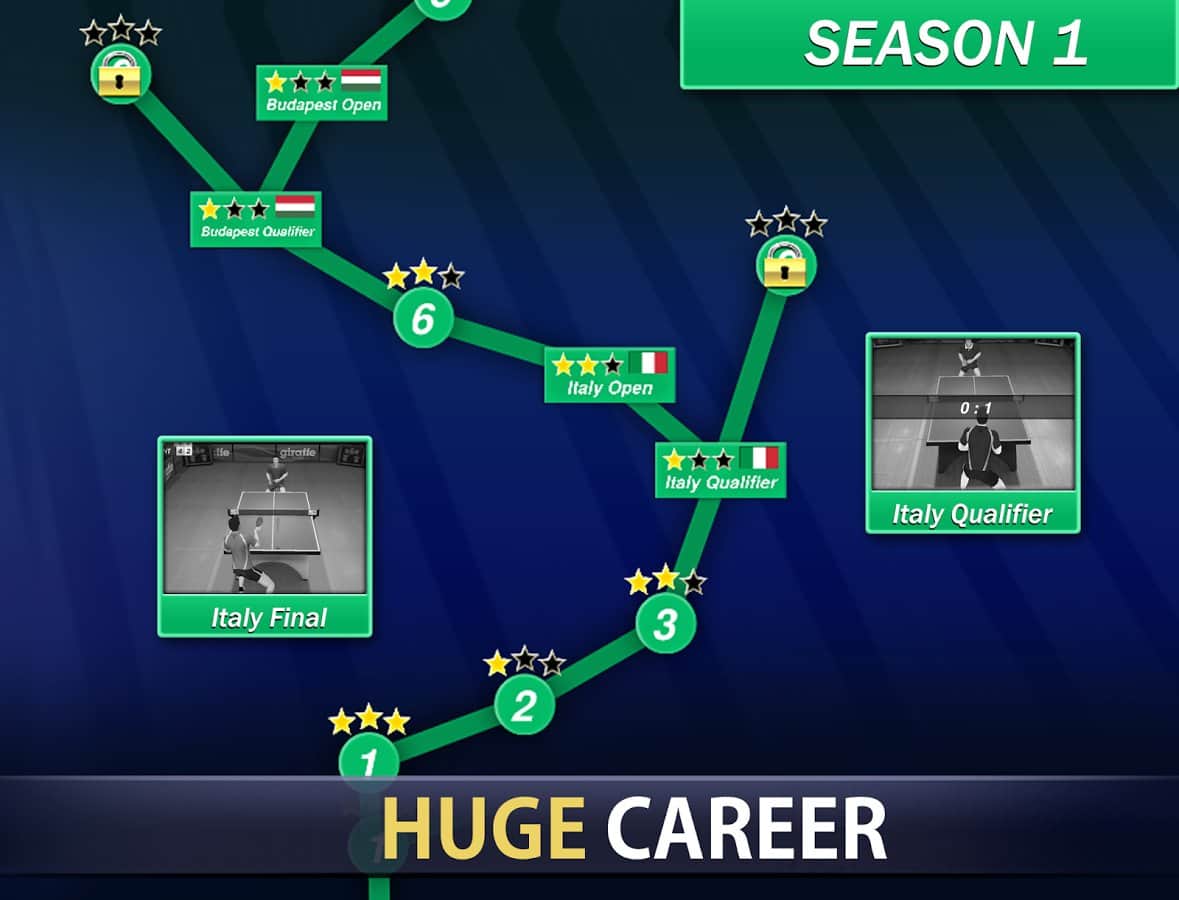 Table Tennis Champion – беріть участь в міжнародному турнірі з настільного тенісу, в цю гру на андроїд. Вибирайте собі тенісиста з різних країна і зробіть його унікальним, вибравши йому підлога, зовнішній вигляд і спортивну форму. Грайте в різні міні-гри, тим самим тренуючи свого тенісиста перед турніром. Киньте виклик найсильнішим гравцям в цій грі і керуйте своїм тенісистом з допомогою одного пальця. Піднімайтеся вгору по кар'єрних сходах, виграючи дружні матчі, тим самим покращуючи показники і параметри свого героя. Купуйте нове спорядження для настільного тенісу і переможете у головному турнірі року, пройшовши більше 50 етапів гри.