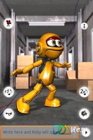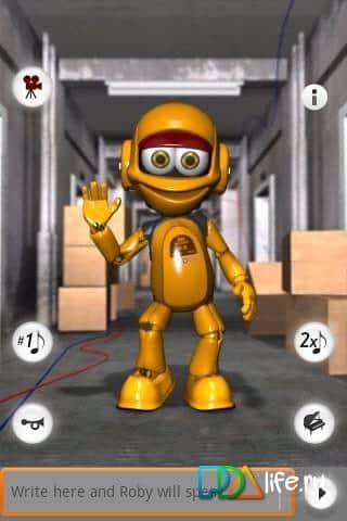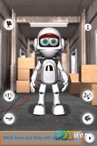 Talking Roby the Robot - говорить робот для платформи андроїд. Він вміє вимовляти слова, введені з клавіатури. Вміє говорити і танцювати хіп-хоп. Повторює сказане вами своїм механічним голосом.