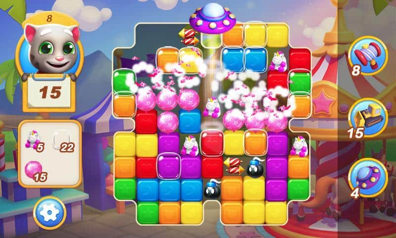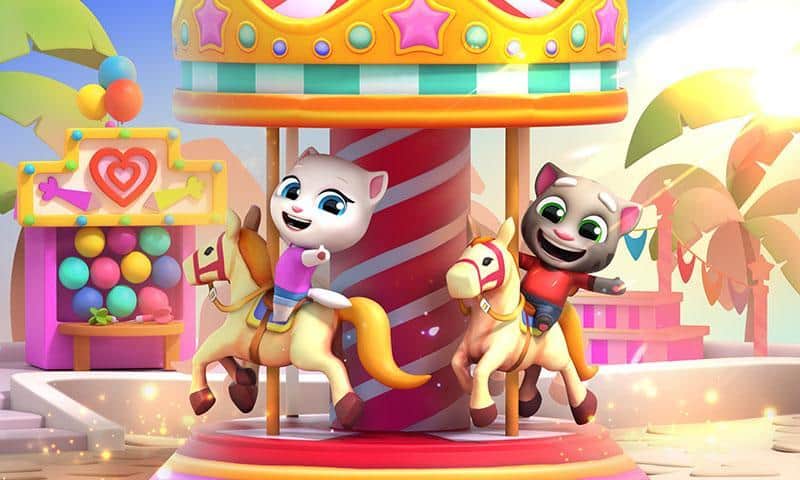 Talking Tom Fun Fair - продовження серії ігор з популярним персонажем у головній ролі. На цей раз вам належить разом з Томом і його друзями спробувати вибудувати цілий парк розваг, при цьому геймплей представляє з себе справжній мікс різних жанрів. І так, вам належить вирішуючи різноманітні головоломки із серії " три в ряд, при цьому збираючи різні комбінації крім грошей і очок досвіду, ви будете отримувати і всілякі предмети, об'єкти та атракції, все це ви і будете використовувати при зведенні парку.