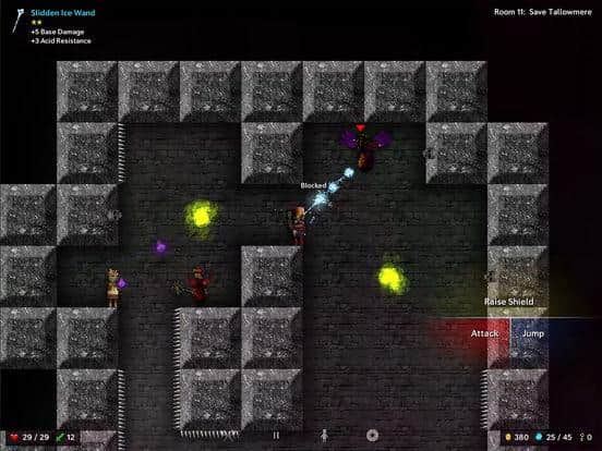 Tallowmere – платформер з елементами RPG для IOS, де ви будете в ролі лицаря рятувати принцесу з ув'язнення в підземеллі. Спускайтеся в похмуре підземелля, де вас будуть чекати жахливі вороги, численні пастки і перепони. Дослідіть численні коридори і кімнати підземелля і шукайте там заховані скарби, а також нову зброю і броню. Прокачуйте свого героя по ходу гри і допоможіть відмінних результатів. Рівні в цій грі будуть випадковим чином генерувати і ставати все складніше з кожним разом. Пройдіть всі підземелля і врятуйте принцесу.