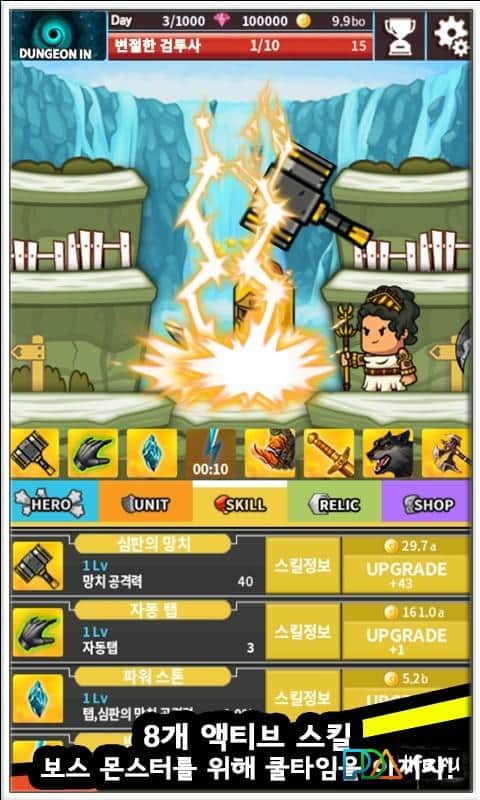 Tap Boss – клікер на андроїд, де вам потрібно знищувати монстрів та інших ворогів. Темні сили і монстри вийшли за ворота пекла і намагаються знищити весь світ, створивши свій план. Вашої головним завданням буде клікати як можна частіше по екрану свого телефону і знищувати всю нечисть, яка прийшла в наш світ. Вдавайтеся до допомоги найманців, які можуть самостійно атакувати ворогів, а також застосовуйте древні артефакти і амулети, щоб підтримати свої сили. Купуйте якомога більше золота та дорогоцінного каміння, які зроблять вас ще сильнішою. Боріться з нечистю і не дайте їм здійснити свої підступні плани.