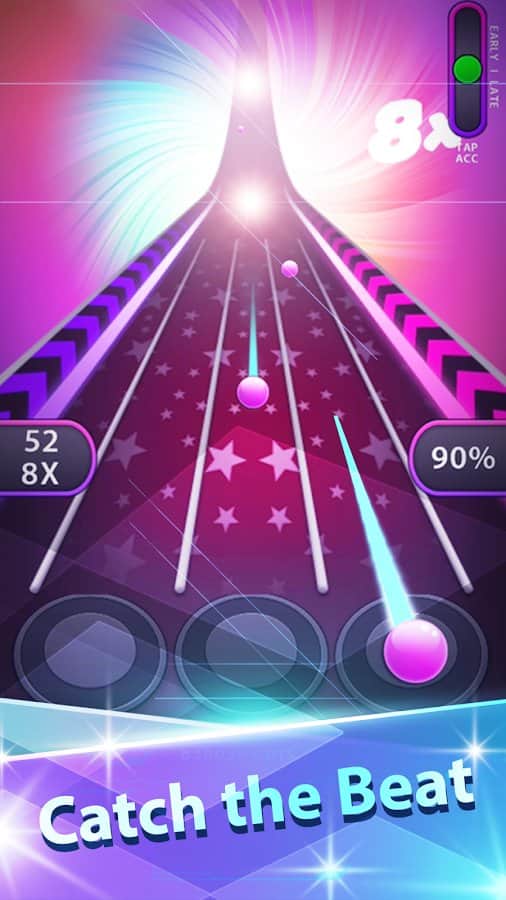 Tap Tap Reborn – музична гра на андроїд, де вам належить перевірити своє почуття ритму. У цій грі вашим завданням будете натискати відповідні кнопки, коли до них будуть наближатися ноти. Грайте в ритмі музики і перевірте на ділі швидкість своєї реакції. Вибирайте в цій грі ту музичну композицію, яка сподобатися вам за звучанням і стилю. Пориньте з головою в цю захоплюючу гру і не попускайте не однієї ноти. Проробляйте комбо удари натискаючи одночасно на кілька кнопок і отримуйте чудові призи. Станьте чемпіоном у цій грі і змагайтеся зі своїми друзями за кращі результати. У грі ви знайдете безліч різноманітних тем, мелодій і таблиці лідерів.