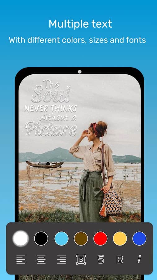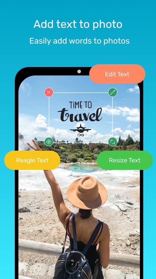 Текст на фото - Доданий текст може не лише змінити загальний вигляд всієї фотографії, а й додати в неї штрих, який запам'ятається кожному. Завантажте потрібне зображення для змін, налаштуйте межі та розміри, відкоригуйте відображення фото та додайте безліч нових деталей: наклейки, текст з різними кольоровими гамами, шрифтами та іншими деталями. Після повної зміни загальної картини ви зможете зберегти готовий знімок у найвищій якості та навіть поділитися ним у соціальних мережах.