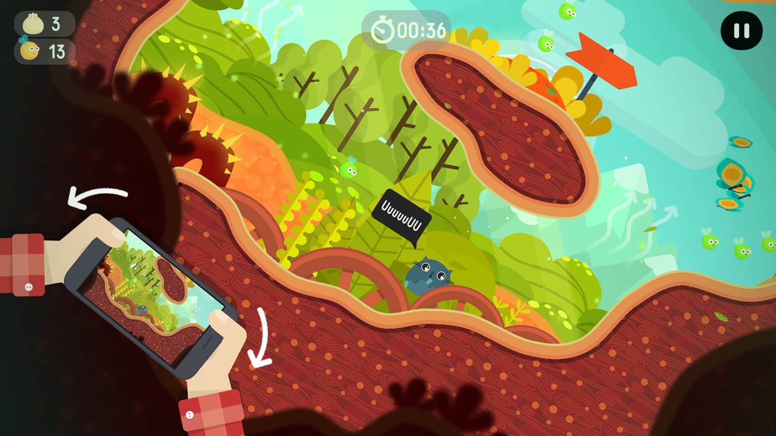The Big Journey – веселий платформер для андроїд, де ви будете допомагати коту Вуса рятувати свого друга кота Чо. У цій грі вашим завданням буде використовуючи акселерометр управляти рухами кота, який котиться вниз по вузьких лабіринтах і печер. Котитеся через численні перешкоди на шляху і робіть невисокі стрибки. Грайте в цю гру і насолоджуйтеся веселим саундтреком і яскравою відмінною графікою. По шляху свого проходження не забувайте збирати численні бонуси і посилення, а також їжу для котів. Подорожуйте з небезпечного світу і відкривайте нові рівні гри. Для управління використовуйте нахили телефону або спеціальні кнопки на екрані.