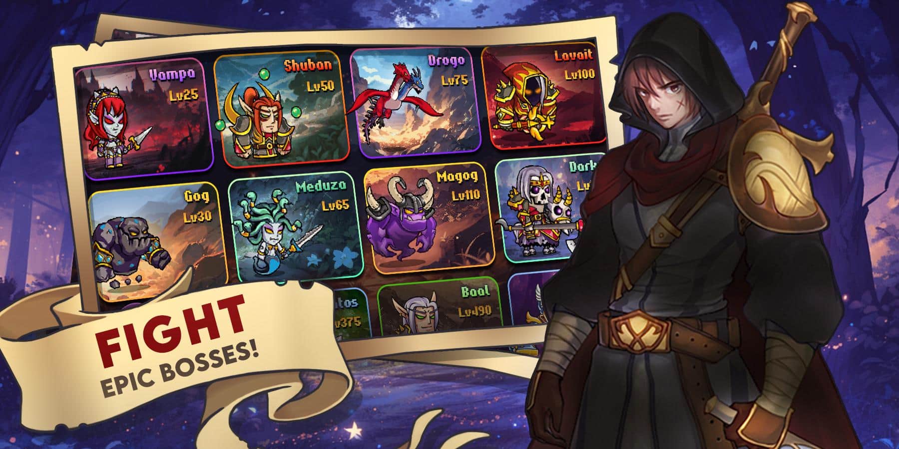 The Dark RPG: 2D Pixel Game - фентезійна рольова пригода, яка повертає вас в атмосферу класичних 8-бітних ігор. Вас чекають підземелля, битви, відкритий світ і безліч можливостей для прокачки вашого героя. Керуйте персонажами, вдосконалюйте їх навички та перемагайте в динамічних міні-іграх у жанрі автоклікера. Обирайте з чотирьох унікальних класів героїв, включаючи магія, лицаря та навіть пухнастого кота, щоб знайти свій ідеальний стиль гри. Розкрийте таємниці села Транквіл і закрийте ворота у світ демонів!