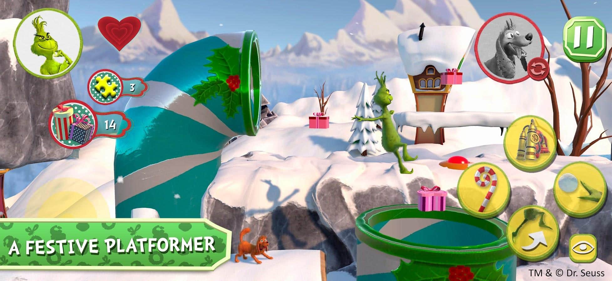 Грінч - Настало Різдво, а це означає, що настав час його вкрасти! Допоможіть Грінчу реалізувати його хитромудрий план і одночасно зігрійте його холодне серце в цьому святковому платформері. Жителі Ктограда, як завжди, насолоджуються піснями, подарунками та смачними частуваннями — всім, що Грінч терпіти не може! Разом зі своїм вірним псом Максом він збирається вкрасти всі різдвяні подарунки. Але щоб залишитися непоміченим і уникнути співу та блискучої мішури, Грінч використовує свої геніальні хитрощі: костюм Санти, ласо у вигляді карамельної палички і навіть швидкісний сноуборд для захоплюючих гонок! На його шляху зустрінуться перешкоди, але сніжки та замороження допоможуть впоратися з набридливими персонажами. У грі передбачений режим для двох гравців на одному пристрої: другий гравець зможе керувати Максом.