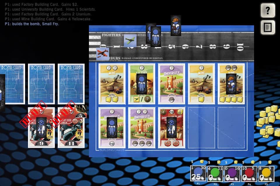 The Manhattan Project - игра сделана по проекту настольной игры, где вам предстоит стать главным в программе по атомному оружию. Вашей задачей в этой игре будет построить как можно больше ядерного оружия, чтобы стать сверхдержавой. Рассматривайте проекты своих работников, расширяйте военную структуру, отсылайте своих шпионов, чтобы они добыли вам все разработки ваших соперников. В игре предложены три режима: одиночный против AI, многопользовательский против AI и одного противника, а также сетевой многопользовательский против AI и нескольких соперников.