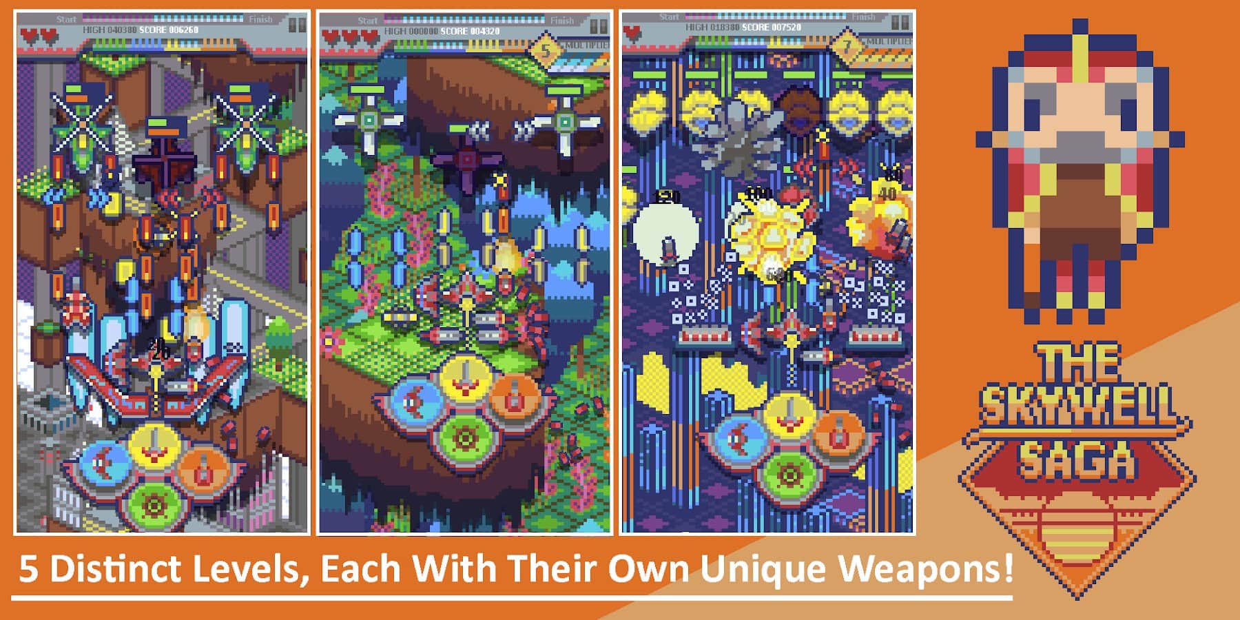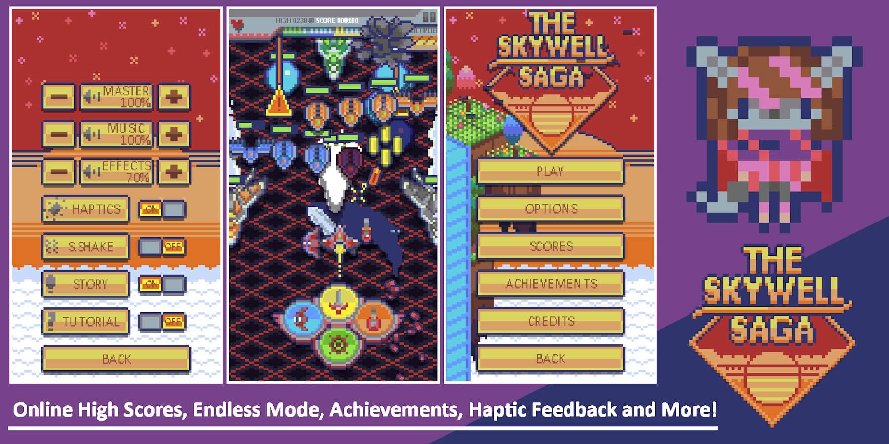 Любите стару школу і гри в стилі «Old school»? Це гра стане чудовим розвагою для фанатів таких легенд, як «Pixel Towers», «Super Bit Dash», «Legends of Yore» і інших додатків піксельної ретро-класики! The Skywell Saga - це якісно пророблена, захоплююча і захоплююча аркада з елементами стрілялки. Події розвернуться в далекому майбутньому, де небо стане вашому полем битви!