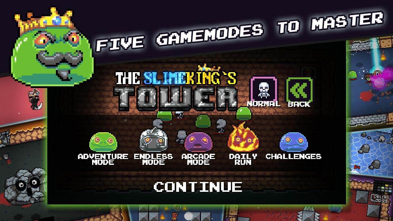 The Slimeking's Tower - класичний піксельний рогалик, виконаний згідно всім вимогам, що пред'являються до жанру, класичне графічне рішення, випадково згенеровані рівні, відсутність права на помилку, тонни лута і предметів. Описувати більш детально елементи гри просто безглуздо, адже це робилося вже не раз. Так що перейдемо відразу до опису сюжету. Головний герой The Slimeking's Tower на вихідних відправляється в старовинні котокомбы, в надії по швидкому "зрубати" грошенят, відшукавши парочку скарбів. Прибувши на місце і спустившись в підземеллі нашому шукачеві скарбів відразу потрапляє схованку, увійшовши в азарт наш герой починає просуватися далі, туди, де його чекає дуже неприємний сюрприз, у вигляді безлічі слимаків з якими вам і належить управляти.