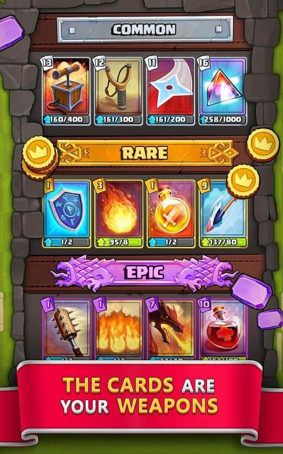 Tile Tactics: Battle Game Card – стратегія на андроїд, де ви будете брати участь у покрокових боях з гравцями зі всього світу. У цій грі ви опинитеся на полі, розділеному на клітинки, переміщайте за ним свого героя і наносити смертельні удари по ворогам. Використовуйте в бою різноманітну зброю, а також застосовуйте різні фінти і хитрощі, щоб здолати суперника. Після вдалого бою збирайте карти, які наділять вас додатковою силою, подарують вашому героєві додаткові здібності і навчать прийомам магії. Набирайтеся досвіду і кидайте виклик найсильнішим гравцям з усього світу, перемагаючи їх на арені і тим самим підвищуючи свій рейтинг.