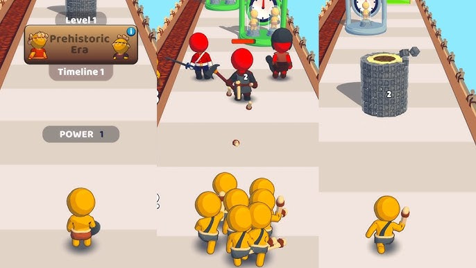 Timeline Up - Маневруйте, стріляючи в перешкоди та ворота, збирайте нових союзників і зміцнюйте свою команду. Чим більше людей у вашій команді, тим потужнішою вона стає. Покращуйте здібності, залучайте нових учасників і рухайтеся вперед, щоб відкривати нові епохи та впливових персонажів.