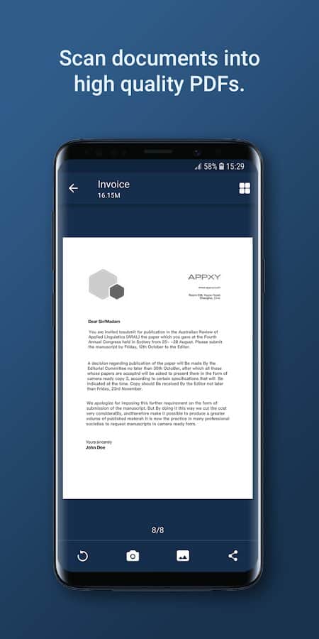 Tiny Scanner Pro: PDF Doc Scan - Тепер перетворити звичайний текст в електронний, стало простіше простого, при цьому зробити це можна в будь-якому місці. Все що вам знадобиться це смартфон з камерою, і це просте додаток, який зробить з вашого смартфона справжній кишеньковий сканер. Точність і якість з якої проводиться скан тексту вражають.