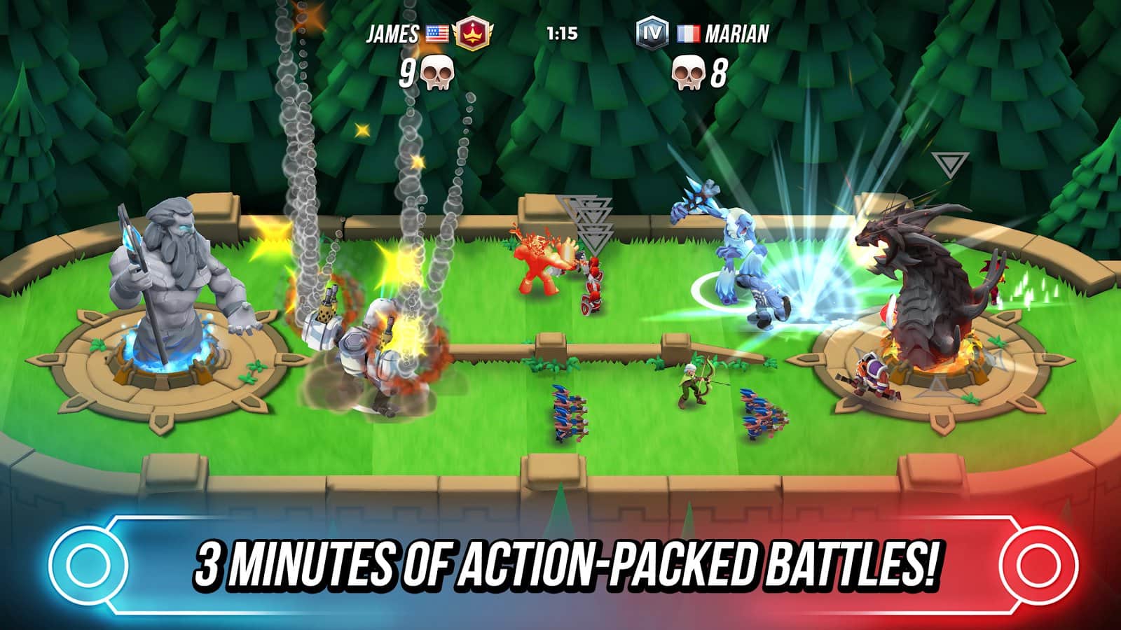 Titan Brawl: наваляй титанам – МОВА на андроїд, де ви візьміть участь в динамічних боях, які будуть тривати 4минуты. Вибирайте собі героя з величезної більшості представлених в цій грі - це може бути відважний найманець, міжгалактичний боєць або древній бог, і створіть з них непереможну і сильну команду. Прийміть свою участь в масових битвах або PvP боях на арені. Розробляйте свою стратегію ведення бою і застосовуйте всі здібності кожного героя, щоб захопити тотем ворогів. Грайте зі своїми друзями і допомагайте їм збільшувати здібності своїх героїв по ходу гри. Колекціонуйте героїв і підніміться на вершину таблиці лідерів, стаючи найуспішнішим гравцем.