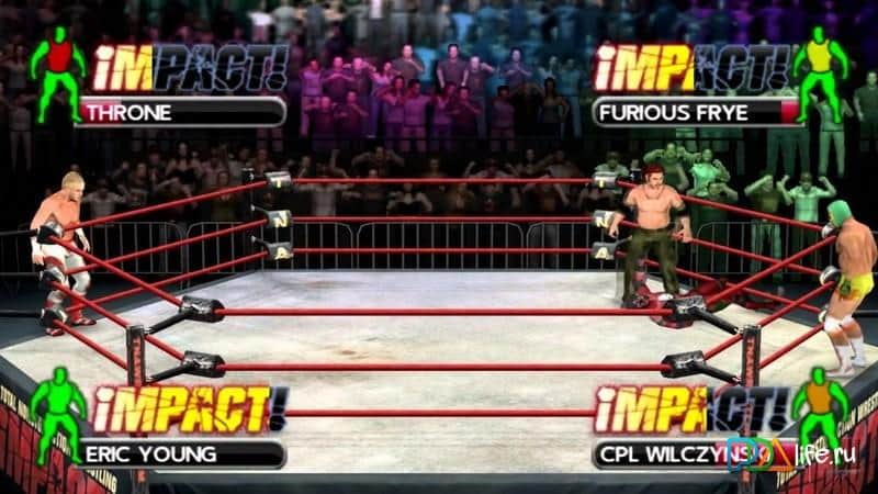 TNA Impact Cross The Line – захоплююча гра для PSP, де ви прийміть участь у боях без правил. Якщо ви завжди любили дивитися бої без правил з такими знаменитими рестлерами як: AJ Styles, Sting, Chris Sabin, Mick Foley або Sharkboy то ця гра для вас. Вибирайте собі одного з представлених в грі 25 зірок TNA і починайте гру. Кожен боєць володіє своїми унікальними навичками і прийомами, які ви зможете досконало опанувати та застосувати до суперника. Застосовуйте особливі прийоми і захвати, щоб якомога швидше покласти суперника та виграти чемпіонат. Підніміться на самий верх таблиці лідерів і кидайте виклик найсильнішим гравцям з усього світу.