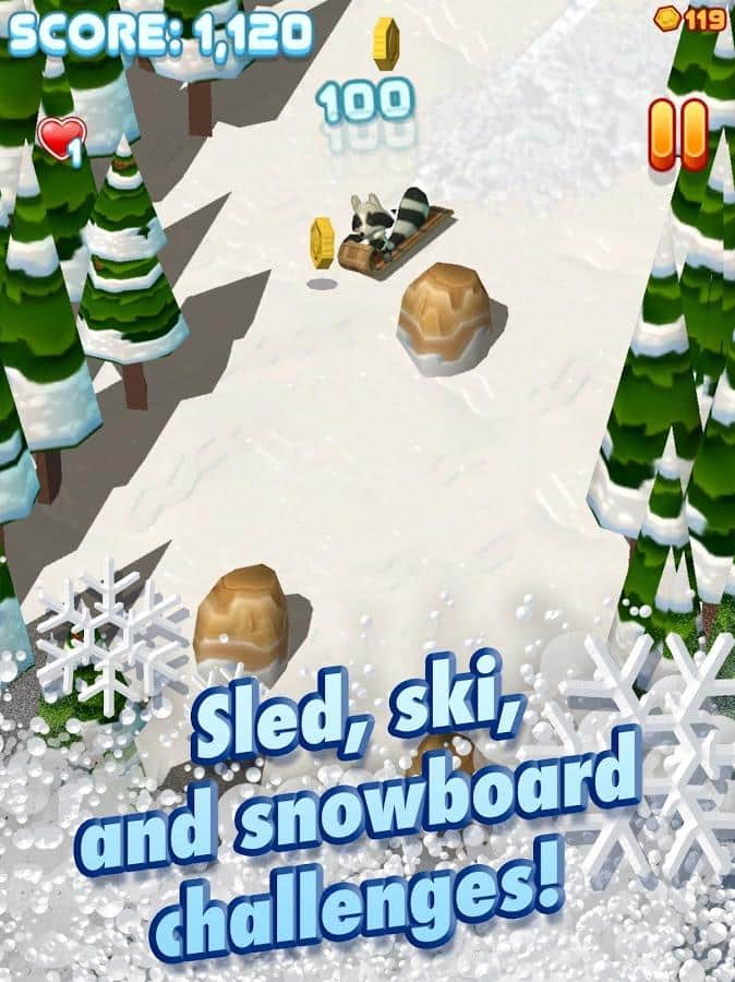 Єноти - забавні тварини які завдяки своїй сміховинної зовнішності, жартівливою звичкам і звичайно ж безмежним можливостям інтернету, які дозволили буквально всім познайомиться з ними, стали одними з найбільш популярних представників тваринного світу. Так студія розробник Prisma Wave, LLC вирішила порадувати нас нескінченним вертикальним ранером з цими милахами у головній ролі. Крім єнотів у грі представлені і інші не менш забавні тварини, так що кожен зможе підібрати собі персонажа. Ігрова механіка Toodle's Toboggan дещо відрізняється від звичних представників жанру, так крім різних стрибків і кульбітів, виконуваних героями на різних зимових снарядах, лижах, санках тощо, герой рухається як би на вас, а не від вас як зазвичай.