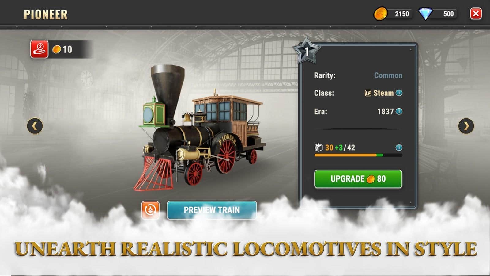Train King Tycoon - Відправтеся в захоплюючу подорож по історії залізниць з Transport King. Тут ви знайдете унікальні і автентичні моделі діорам, створені справжніми майстрами. Збирайте різноманітні потяги від парових до дизельних, та вибивайте шлях від сходу США до заходу протягом 150 років. На вашому шляху вас чекають цікаві епізоди та подорожі по різним країнах. Розблокуйте режим очікування, щоб автоматично збирати ресурси. Створіть свою власну залізничну імперію та керуйте нею в різні епохи Америки. Стратегічно плануйте маршрути, збирайте ресурси та пасажирів, розширюйте свою діораму й відвідуйте творіння ваших друзів. Зустрічайтеся з яскравими неігровими персонажами, беріть участь в сюжетних подіях та пориньте в атмосферу історії.