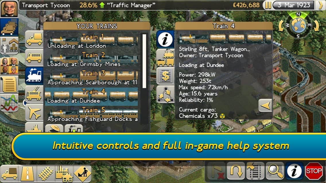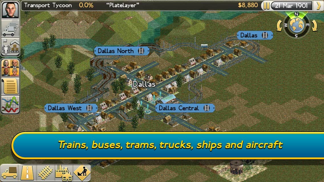 Transport Tycoon - Бизнес стратегия на андроид по постройке и развитии своей транспортной империи. Откройте в себе новые таланты инженера и управляющего, чтобы наладить настоящую сеть пассажирских и грузовых перевозок. Воплощайте в жизнь все свои идеи инженерного дела, тщательно продумывайте все свои постройки и управления. В игре очень большая карта, это даст вам дополнительное преимущество для развития своего бизнеса.