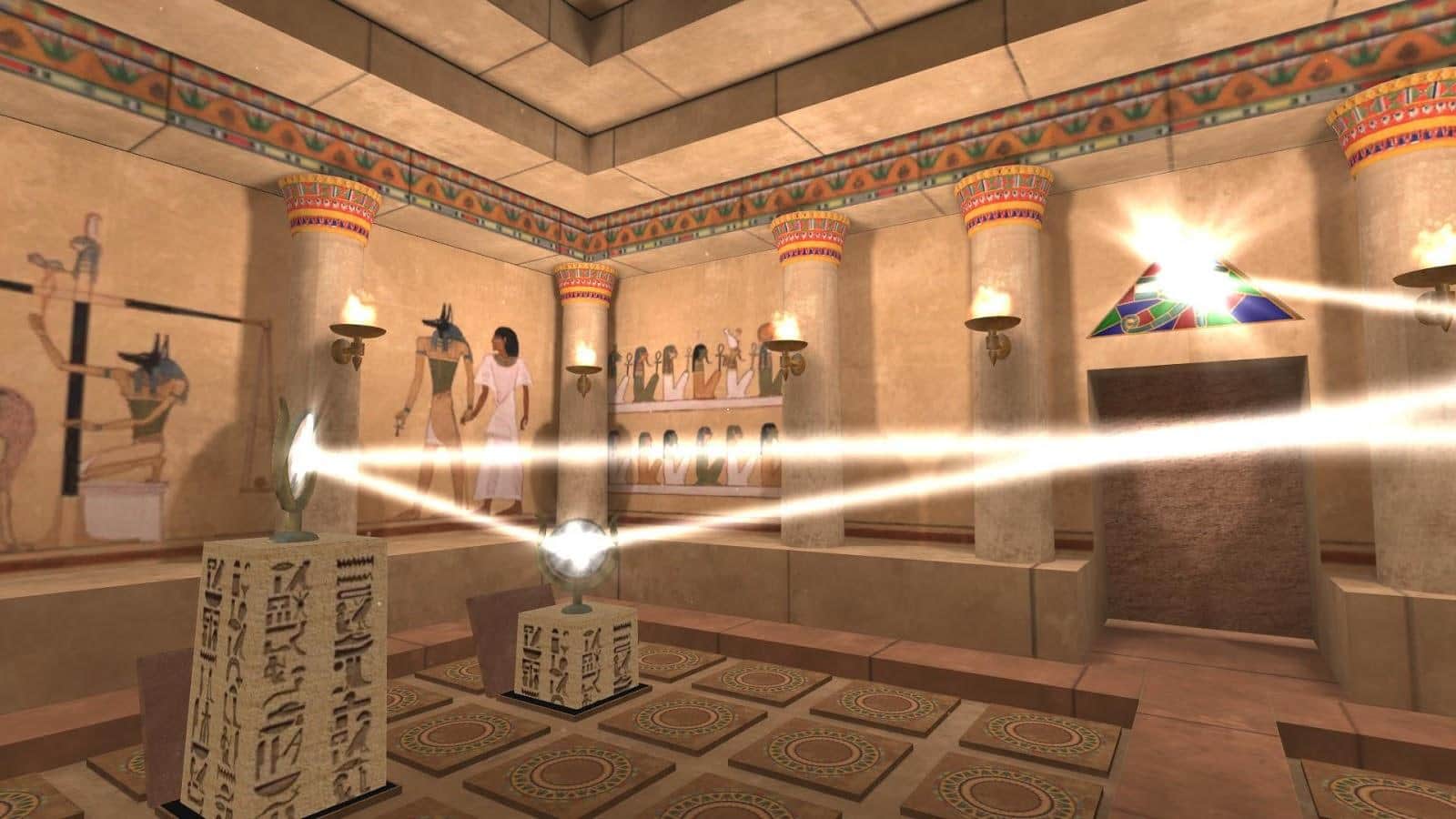 Treasure Hunter VR – гра на андроїд, яка перенесе вас в Єгипет де ви станете першовідкривачем. У цій грі ви в ролі дослідника Джейн відвідайте древній храм фараона і постаратися відшукати всі скарби. Вашим завданням буде вирішувати непрості завдання і збирати механізми для того, щоб роздобути бажане. Ця гра була спеціально спроектована для занурення вас у віртуальну реальність, де ви будете вирішувати головоломки, засновані на фізиці світла. Розгадайте всі таємниці та загадки гробниці фараона і насолоджуйтесь відмінною деталюванням кожного приміщення храму. Пройдіть всі 12 рівнів гри і роздобудете стародавні артефакти стати першовідкривачем.