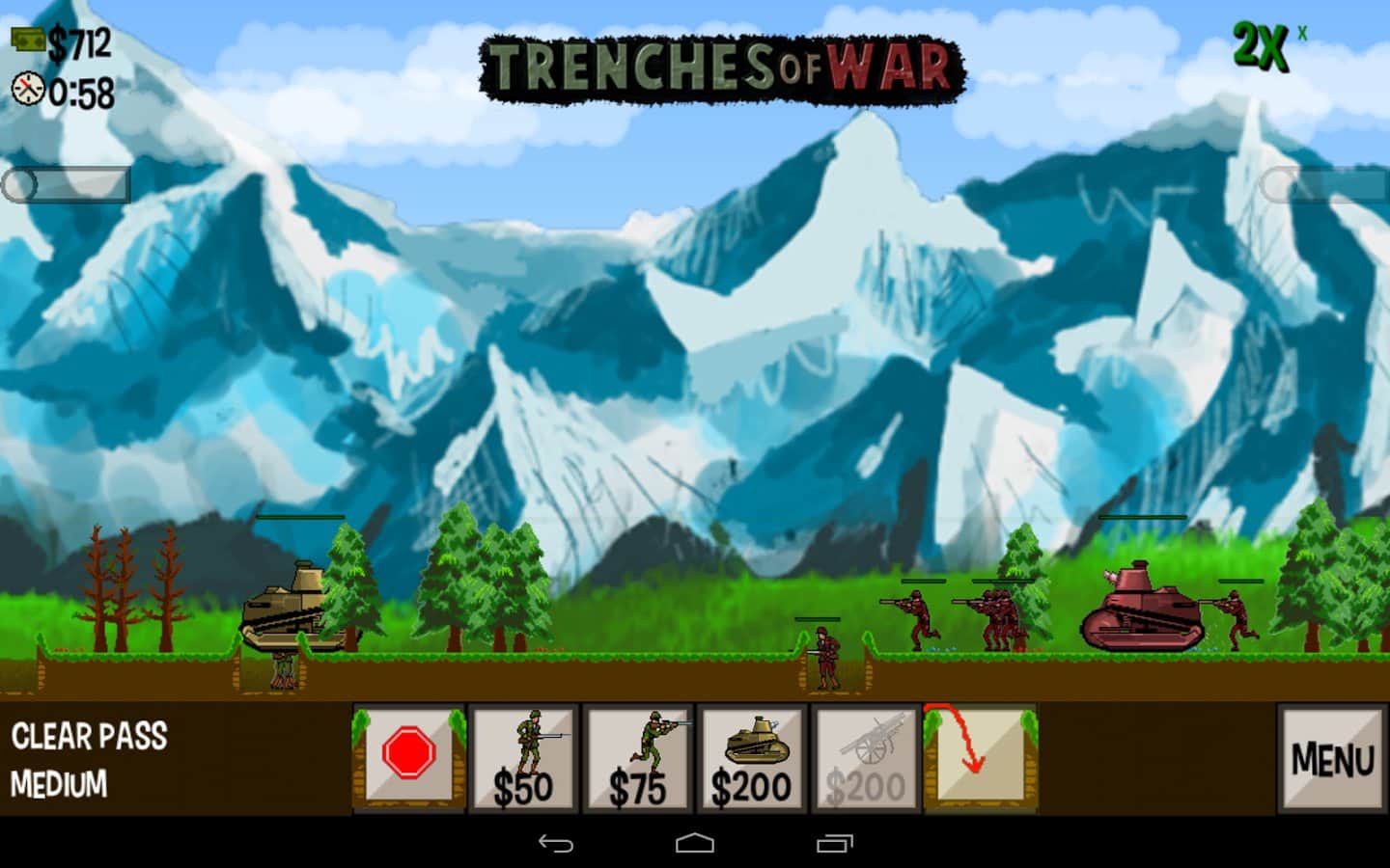 Йде війна, вороги окопалися і до них так просто не підібратися. Але в Trenches of War не можна просто сидіти і чекати, коли ворогові потрібно доставка їжі або він сам вирішить піти вперед. Потрібно особисто планувати рух власної армії через поле бою і пробиратися в стан ворога, захоплюючи в полон і знищуючи супротивників. Важливо тільки заздалегідь спланувати всі маневри, щоб не потрапити під ворожий вогонь і не втратити важливу техніку. Коли все буде виходити, головнокомандувач довірить ще й елітні підрозділи. Перемагай у війні завдяки своїй стратегії, а не кількістю воїнів!