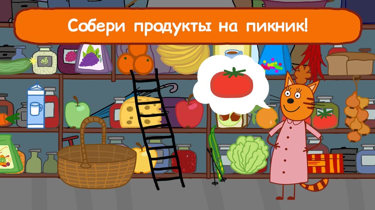 Три Кота Пікнік – відмінна гра для дітей де вони знову зустрінуться з веселими героями Коржиком, Карамелькою і Компотом. Ця гра створена для розвитку та навчання вашого малюка. Вирушайте разом з героями на пікнік і допомагайте їм виконувати різні завдання і місії. Збирайте гриби та ягоди, а також ловіть рибу, обходите всі перешкоди на шляху і вирішуйте нескладні завдання. Допоможіть мамі кішці зібрати необхідні продукти і для пікніка, а татові кішці прибрати з дороги величезне дерево. Після виконаної роботи приготуйтеся до смачного обіду.