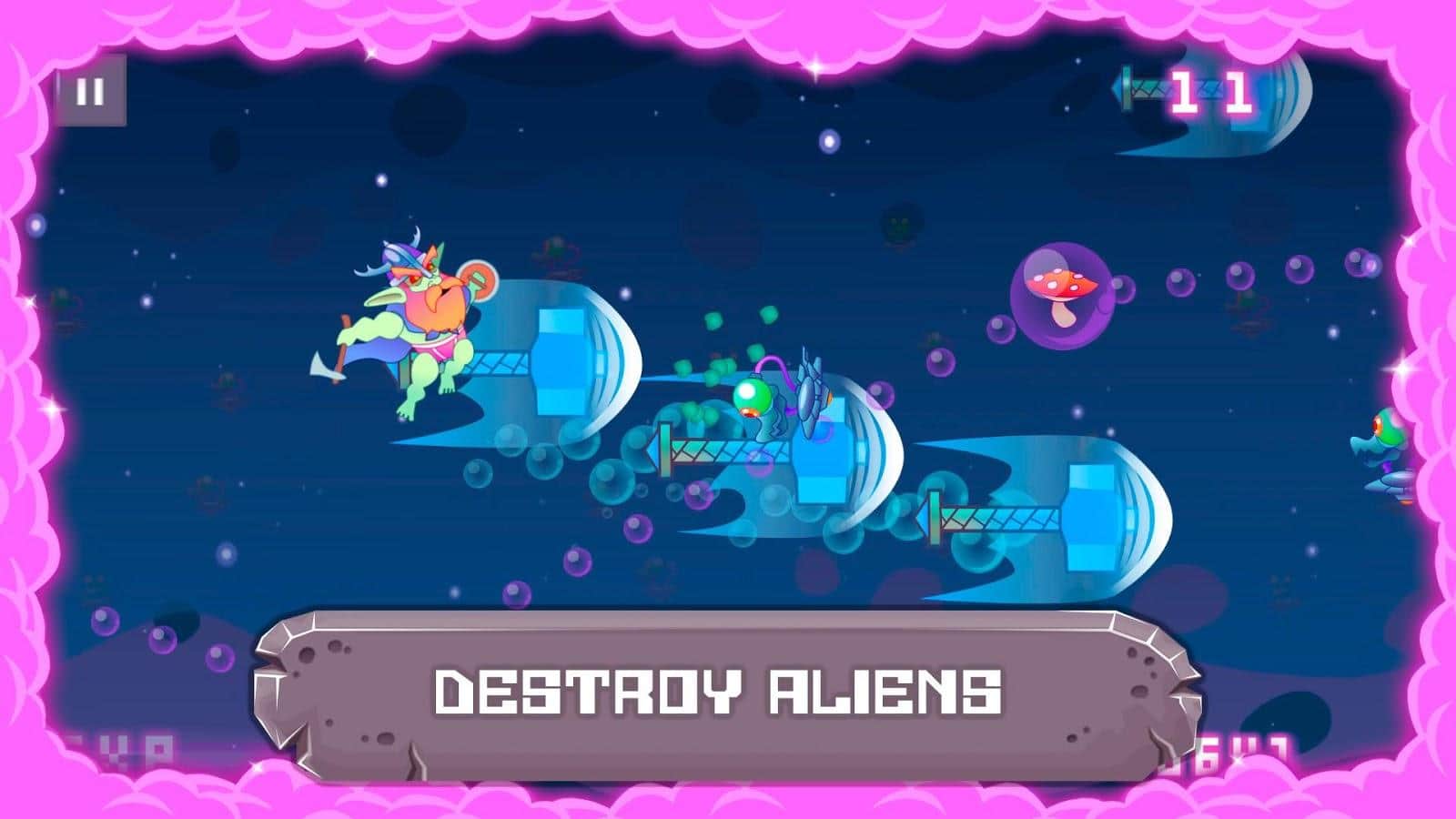 Trippy Viking - Ця гра, наочний приклад того, що може статися, коли розробники купують тільки якісні наркотики. Що ж буде, коли варвар-вікінг упоровшись грибами відправився в небеса що б знищувати прибульців з допомогою свого молота і супер зброї, його райдужного ем, напевно це відрижка яка змітає все на своєму шляху і виглядає як веселка. Ну в цілому гра досить весела, хоч і дивна, і виглядає скоріше як наркотичний прихід. Вообщем для любителів різких кольорів, і дивного чаду однозначно рекомендую.
