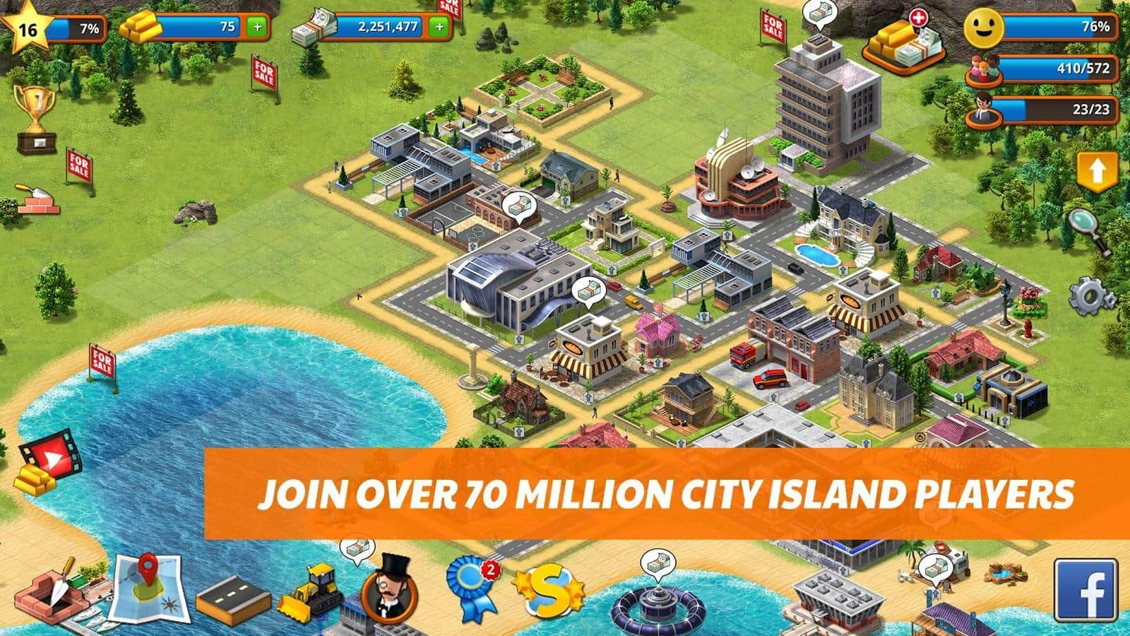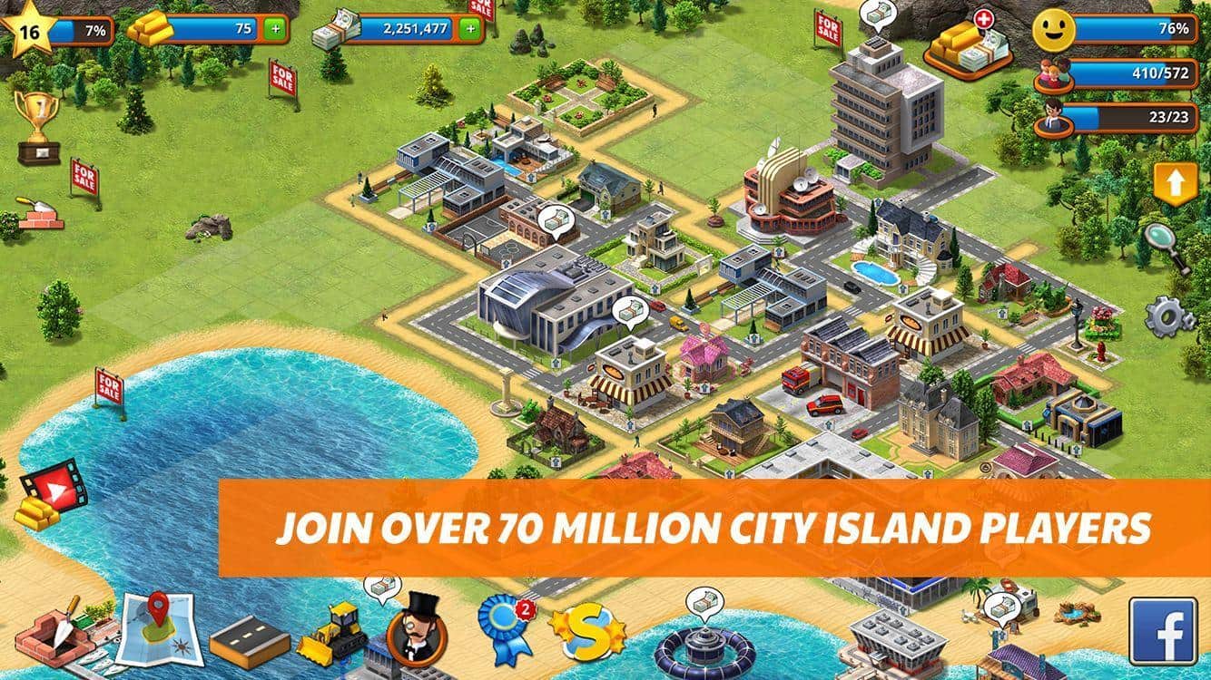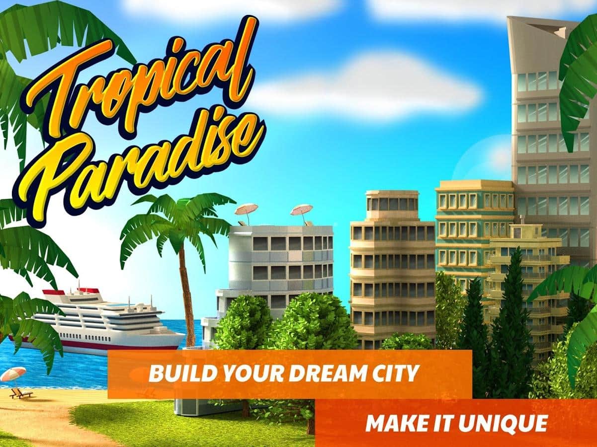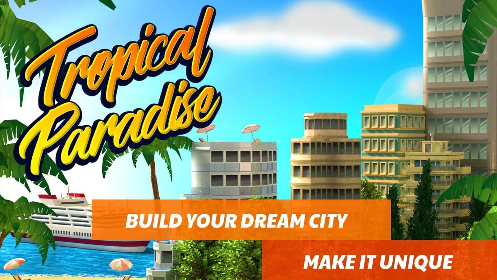 Tropical Paradise: Town Island - City Building Sim – стратегія де ви будете перетворювати звичайний безлюдний острів в красивий курорт. У цій грі перед вами відкриється звичайний острів посеред океану, який ви повинні змінити і перетворити в курортний куди будуть з'їжджатися туристи з усіх куточків земної кулі. Здобувайте цінні ресурси і на зароблені гроші будуйте величезні готелі, басейни, сквери і сади. Зводите багатоповерхові будинки і не забувайте про комфорт місцевих жителів ладу торгові центри, кінотеатри, житлові райони і інші будови. Перетворіть свій острів в казкове місце і відкривайте для себе нові острови.