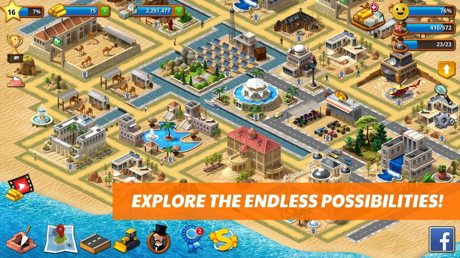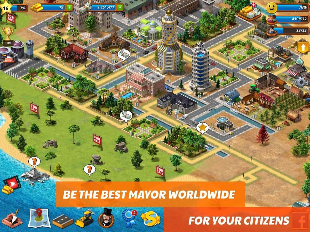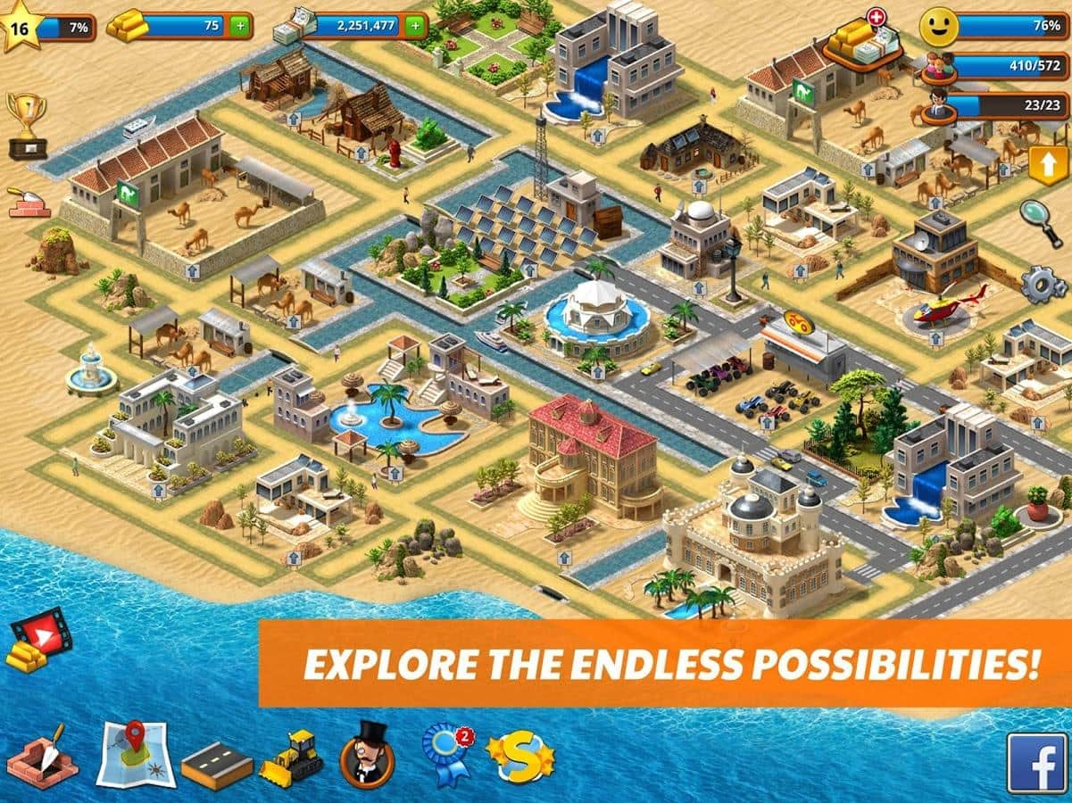 Tropical Paradise: Town Island - City Building Sim – стратегія де ви будете перетворювати звичайний безлюдний острів в красивий курорт. У цій грі перед вами відкриється звичайний острів посеред океану, який ви повинні змінити і перетворити в курортний куди будуть з'їжджатися туристи з усіх куточків земної кулі. Здобувайте цінні ресурси і на зароблені гроші будуйте величезні готелі, басейни, сквери і сади. Зводите багатоповерхові будинки і не забувайте про комфорт місцевих жителів ладу торгові центри, кінотеатри, житлові райони і інші будови. Перетворіть свій острів в казкове місце і відкривайте для себе нові острови.