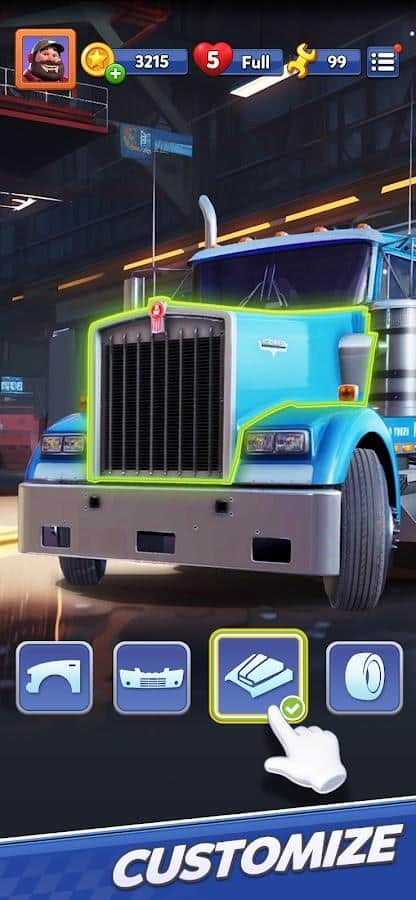 Truck Star - Приготуйтеся до незабутньої пригоди в світі вантажівок з захоплюючою грою Три в ряд: симулятор вантажівок. Це не просто гра - це занурення в реалістичний світ великогабаритного транспорту з неперевершеним геймплеєм та гострими відчуттями. Відкрийте для себе реалістичний світ, де ви зможете не лише насолоджуватися водінням, а й модернізувати свої вантажівки, вибираючи деталі, оформлення та навіть звукові сигнали. Кожна вантажівка стане унікальною, оскільки ви зможете підібрати для неї індивідуальні деталі та оформлення: від бамперів до фар - все як у справжніх вантажівок.