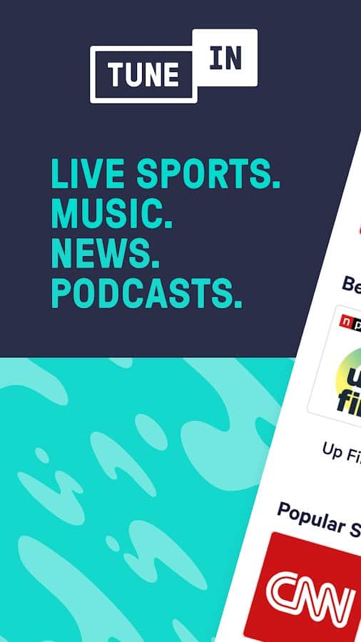 TuneIn Radio для платформи андроїд пристроїв . Відмінне радіо, яке може працювати у фоновому режимі під час використання інших додатків. Містить більше 50 тисяч радіостанцій, так що знайти улюблену радіостанцію або підібрати по настрою завжди можна. Завантажуємо, встановлюємо і слухаємо в будь-який час і в будь-якому місці класну музику і всілякі новини. Відмінний настрій і вдалий день вам забезпечений.