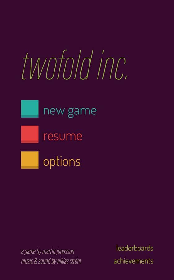 Зараз, напевно, далеко не кожен згадає що ж це за студія grapefrukt games, проте ще кілька років тому у часи виходу її першого проекту для платформи Андроїд, під назвою rymdkapsel ця компанія була у всіх на слуху. rymdkapsel - медитативна стратегія завоювала величезну популярність, але останнім часом інтерес до проекту вщух і про нього почали забувати. Але от хлопці з grapefrukt games випустили у світ свою другу гру під назвою twofold inc. twofold inc. - геометрична головоломка поєднує в собі елементи кубика Рубіка, змійки, три в ряд. Як і попередня гра twofold inc. виконана в мінімалістичному стилі і з простим, але захоплюючим геймплеєм.