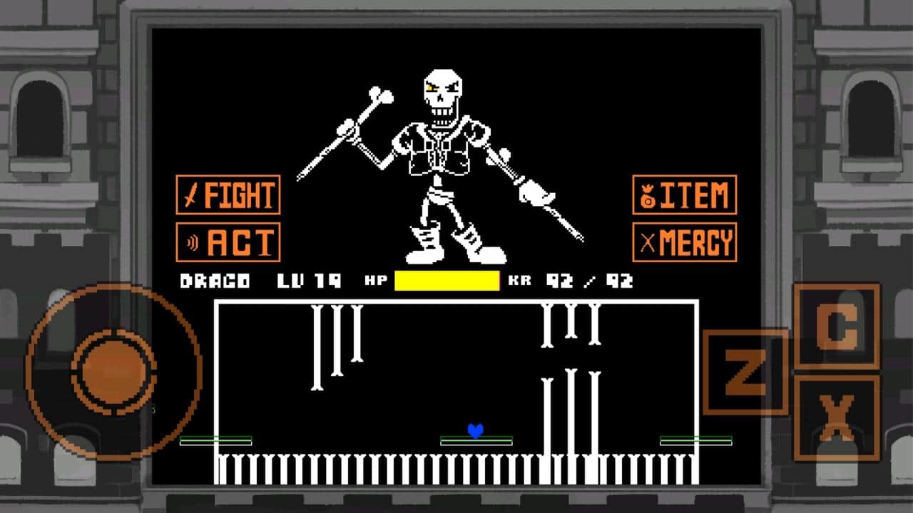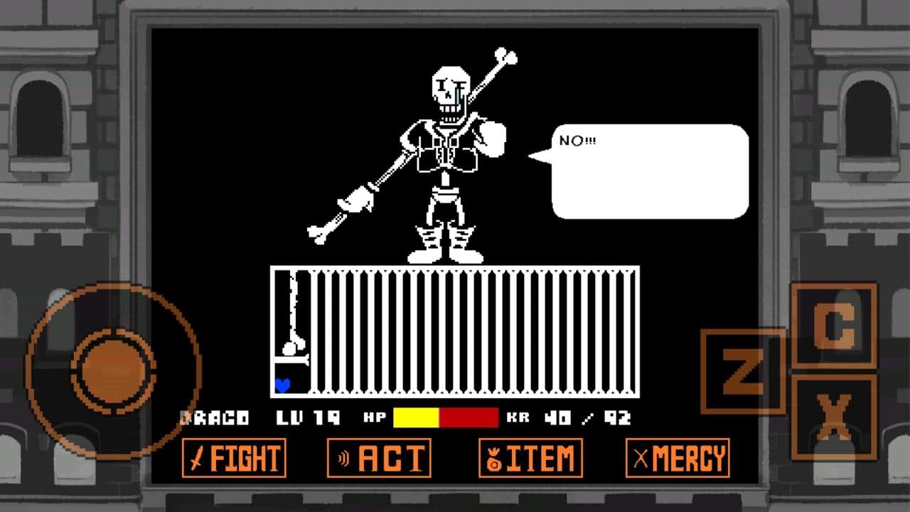 Undertale: Disbelief - готові битися в захоплюючих битвах проти скелета Папірусу? Тоді спробуйте! Проходячи несподівані повороти в його атаках, ви наносите шкоду натискаючи на шкалу у вдалий момент. Бої настільки швидкі, що зміркувати немає часу, потрібно лише діяти. Літаючі, що крутяться кістки і голови з убивчими лазерами будуть з'являтися з усіх сторін. Ваше серце повинно стрибати, ухилятися і проходити паркуры. Папірус буде всіляко намагатися вас відволікати словами, намагайтеся концентруватися і не звертати увагу.