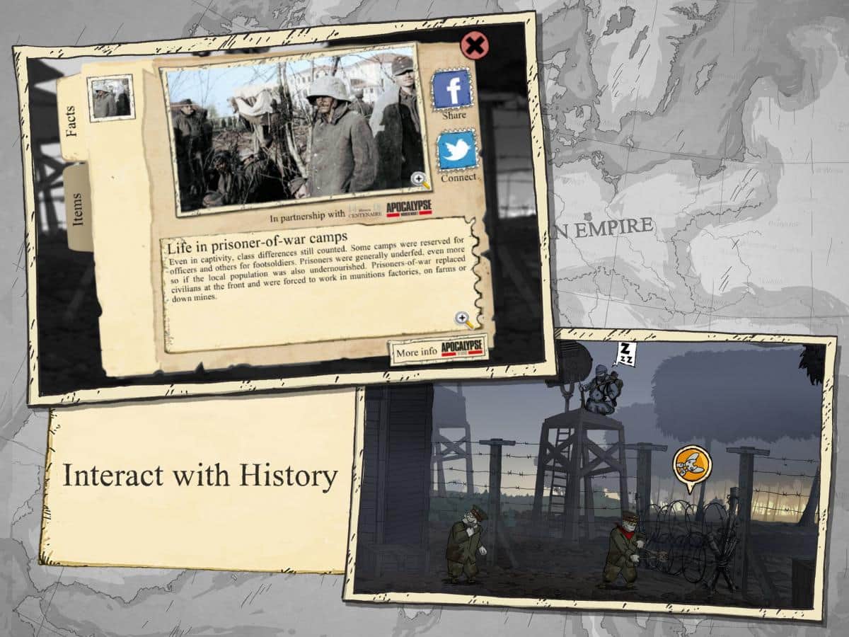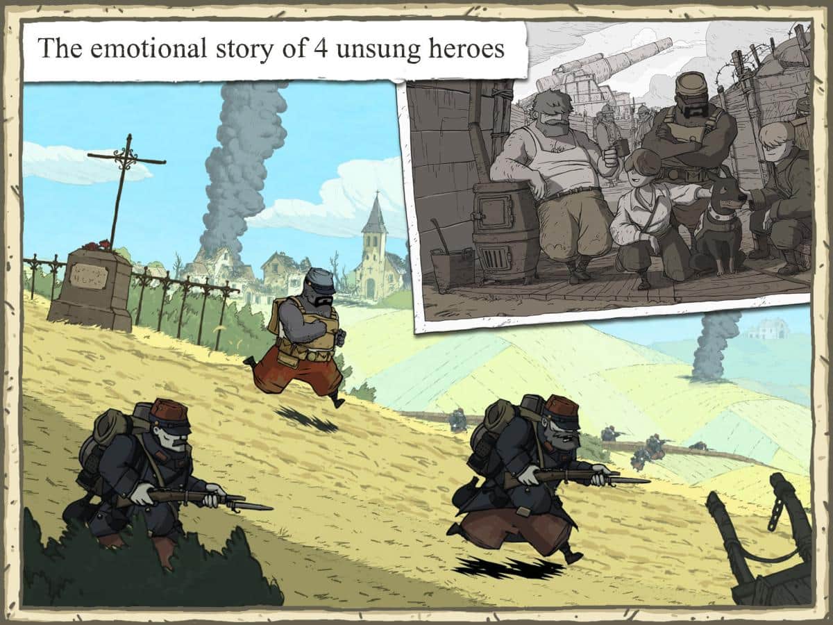 Valiant Hearts: The Great War - цікава пригода кількох хлопців яких призвали на службу в часи Першої світової війни. Гра з красивим і винятковим дизайном. Пориньте в страшну атмосферу тих часів Першої світової війни! Допоможіть вижити своїм героям у важкий час, вирішуючи головоломки і пробираючись серед окопів і траншей у тил ворога. Вашим вірним помічником буде пес Уолт. Сюжет гри є вигаданим, проте ви зможете відвідати кілька реальних відомих місць і спостерігати за важливими битвами на Західному фронті.