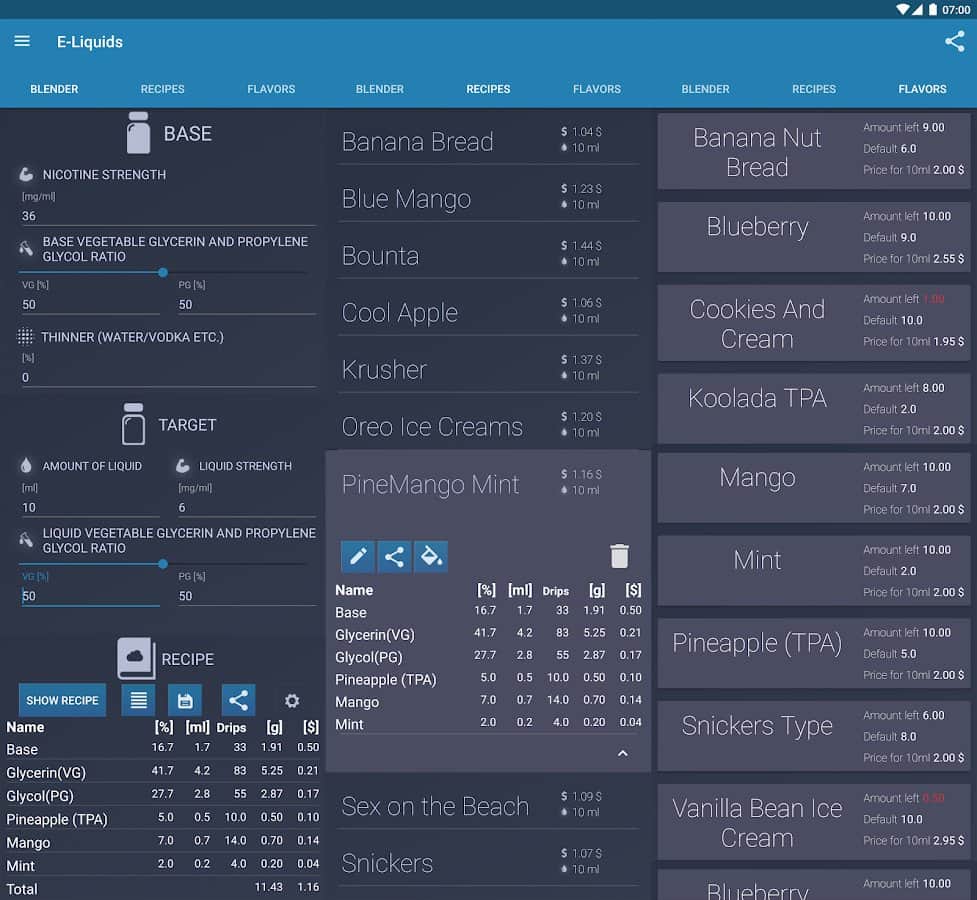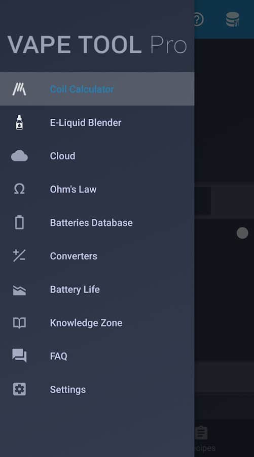 Vape Tool Pro - преміум версія програми для користувачів і творців електронних сигарет. Дана програма містить величезну кількість інформації про різні види елементів живлення, спіралей, сумішей для куріння, а так же повноцінний калькулятор, який допоможе вам без праці вирахувати всі необхідні параметри. Зручний інтерфейс і широкий вибір змінних помітно полегшить вам роботу, при цьому від вас не потрібно спеціальних знань. А різні налаштування дадуть можливість використовувати Vape Tool Pro як досвідченим, так і початківцям вайперам.