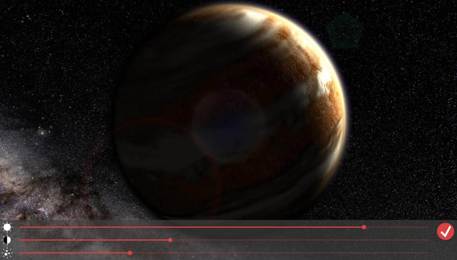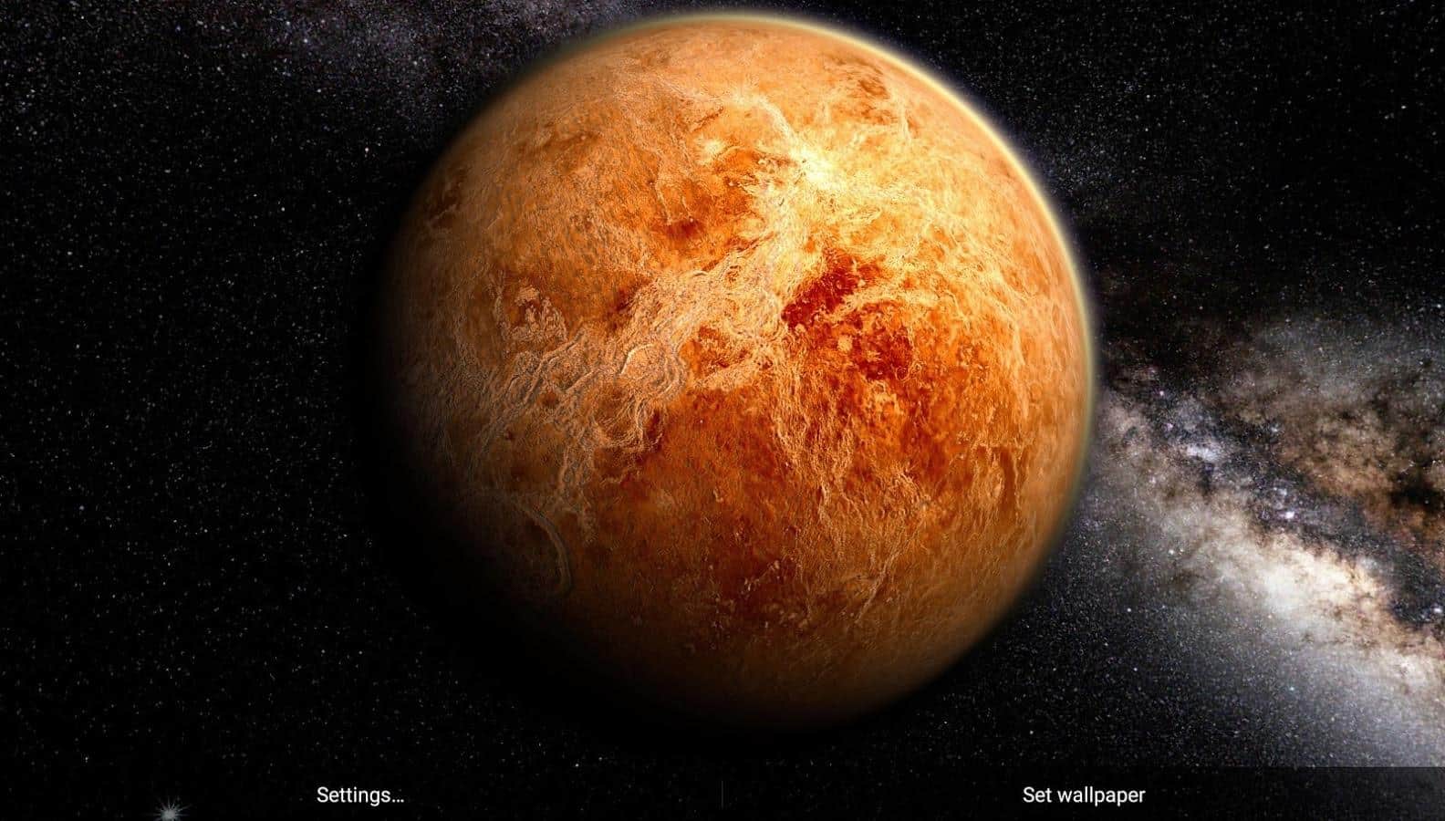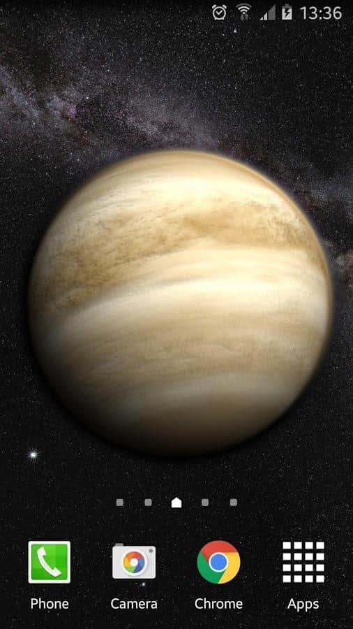 Venus in HD Gyro 3D XL - Дивовижні живі шпалери, які перенесуть цілий космос на екран вашого пристрою. За допомогою них, ви зможете спостерігати за Венерою, з будь-якого ракурсу, і навіть зможете почитати інформацію про цю планету. Перегортаючи робочий стіл, ви будете повертати і саму планету. А якщо вам не потрібна ця функція, ви можете просто відключити її в налаштуваннях. Так само, ви зможете вибрати один з п'яти режимів камери, або зовсім пересувати її вручну. А ще кут, під яким буде падати сонячне світло на планету. Все це в поєднанні з відмінною графікою і прекрасним виконанням, роблять цей додаток одним з кращих.